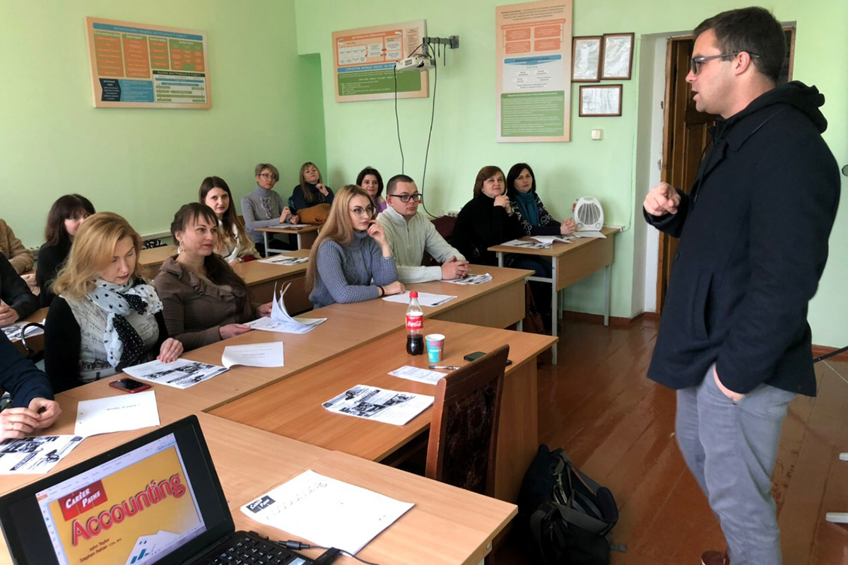 Кларк, який за фахом бухгалтер-бізнес-аналітик, пояснив значення термінів: bookkeeper (обліковець), tax accountant (бухгалтер, що рахує податки), internal auditor (внутрішній аудитор), budget analyst (бюджетний аналітик), management accountant (бухгалтер з управлінського обліку), financial advisor (фінансовий консультант), trainee (практикант), file clerk (діловод) тощо. Крім того, цікаво було послухати доповідь волонтера про особливості здобуття в США спеціалізованої ліцензії бухгалтера CPA (Сertified public accountant) та порівняти із специфікою сертифікації бухгалтерів в Україні.