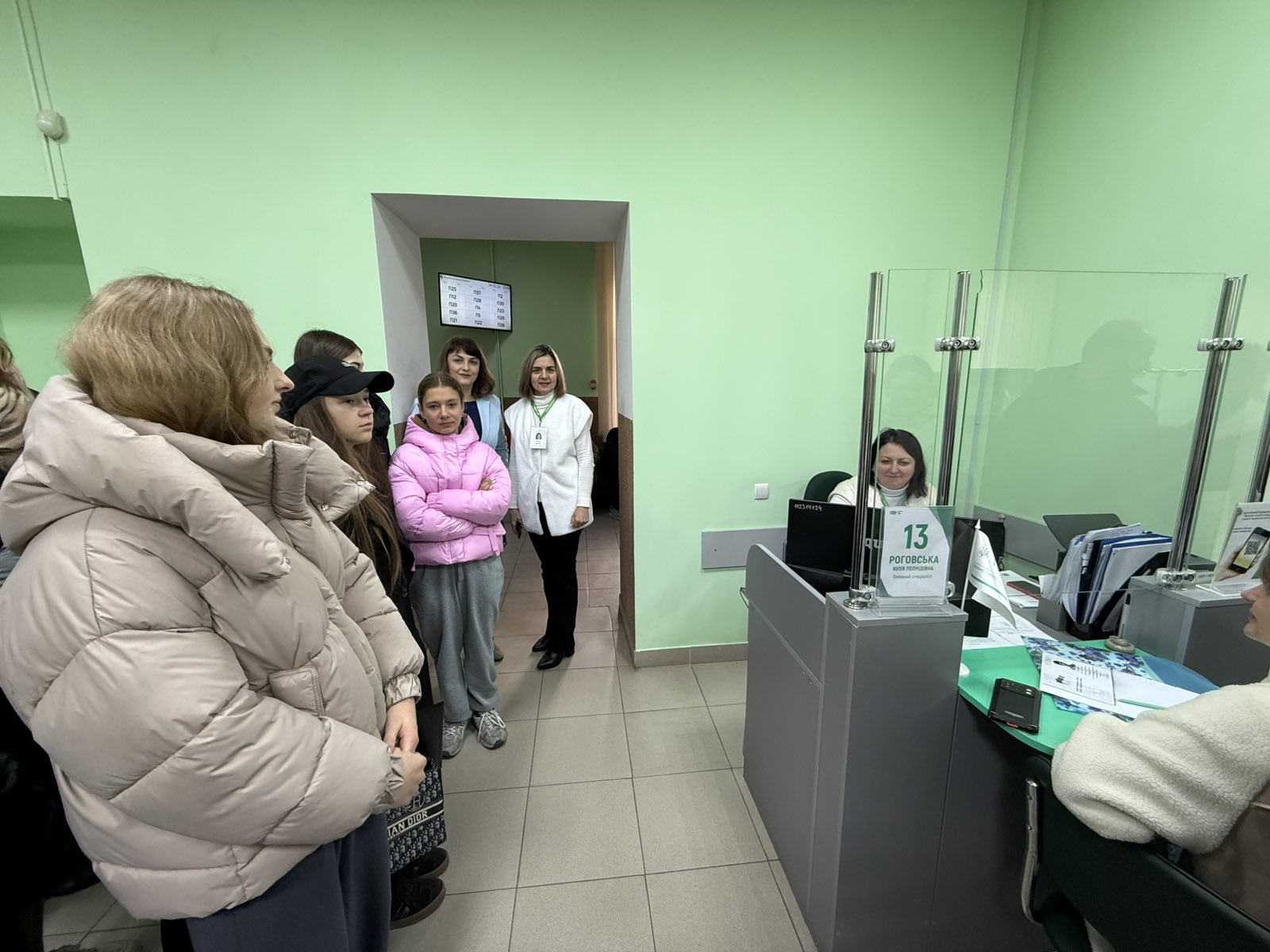14 жовтня 2025 року для здобувачів вищої освіти навчально-наукового інституту бізнесу і фінансів завідувачем кафедри менеджменту, публічного управління та адміністрування, д.е.н. професором Аллою ЧИКУРКОВОЮ з метою поглиблення фахових компетенцій здобувачів вищої освіти з управління персоналом, формування передумов для успішного працевлаштування в майбутньому та можливості практичного навчання й набуття якостей сучасного керівника-лідера було організовано виїзне практичне заняття на тему «Методи та технології відбору кандидатів в організацію» на базі Сервісного центру обслуговування громадян ГУ Пенсійного фонду України в Хмельницькій області.