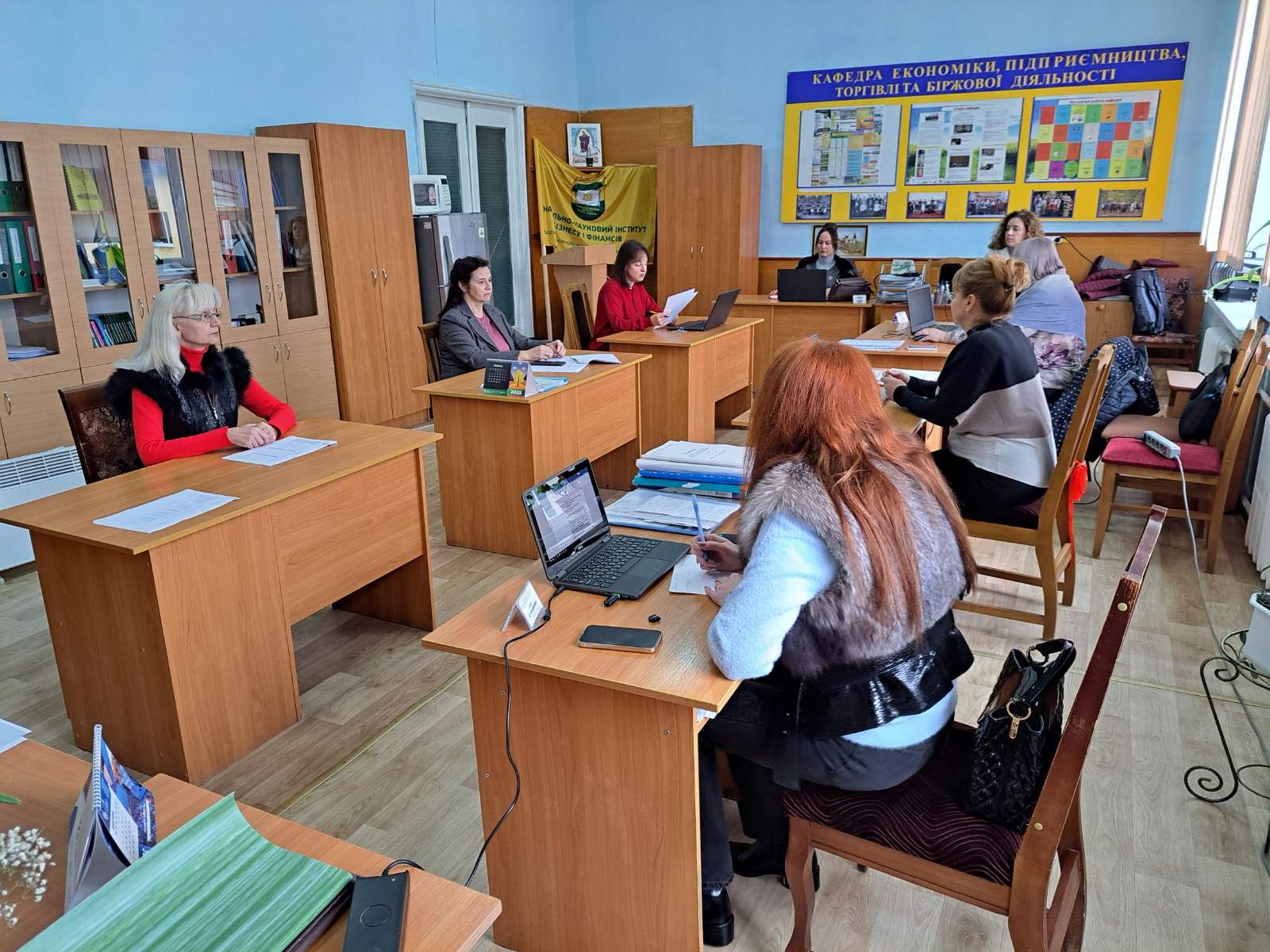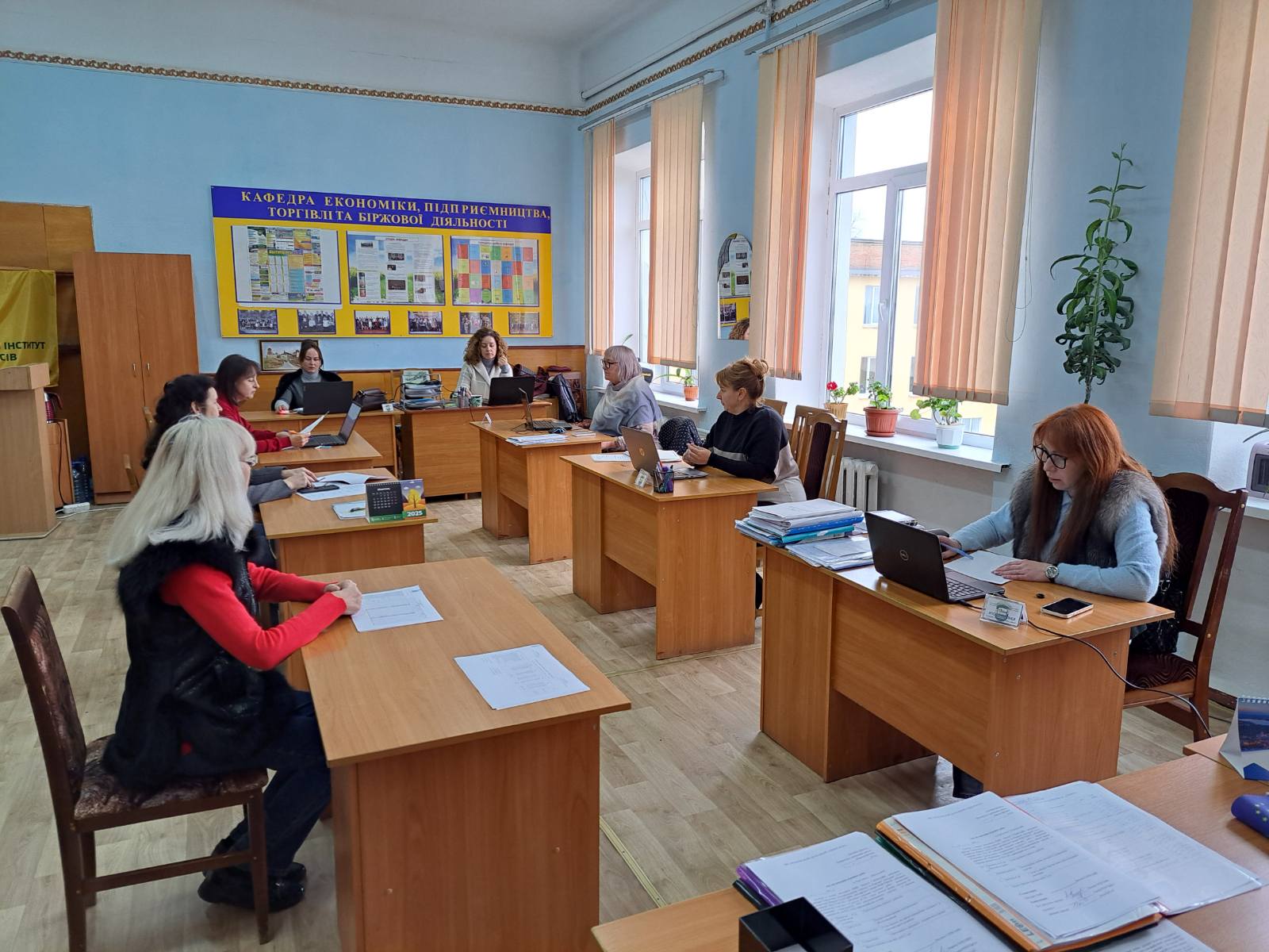 7 листопада 2025 року на кафедрі економіки, підприємництва, торгівлі та біржової діяльності відбулося засідання з питань затвердження складу та розподілу обов’язків робочої групи щодо моніторингу та періодичного перегляду освітніх програм «Економіка» і «Підприємництво, торгівля та біржова діяльність» першого (бакалаврського) та другого (магістерського) рівнів вищої освіти. Захід проводився у змішаному форматі та був присвячений актуальним питанням реалізації освітніх програм для забезпечення якісного освітнього процесу.
