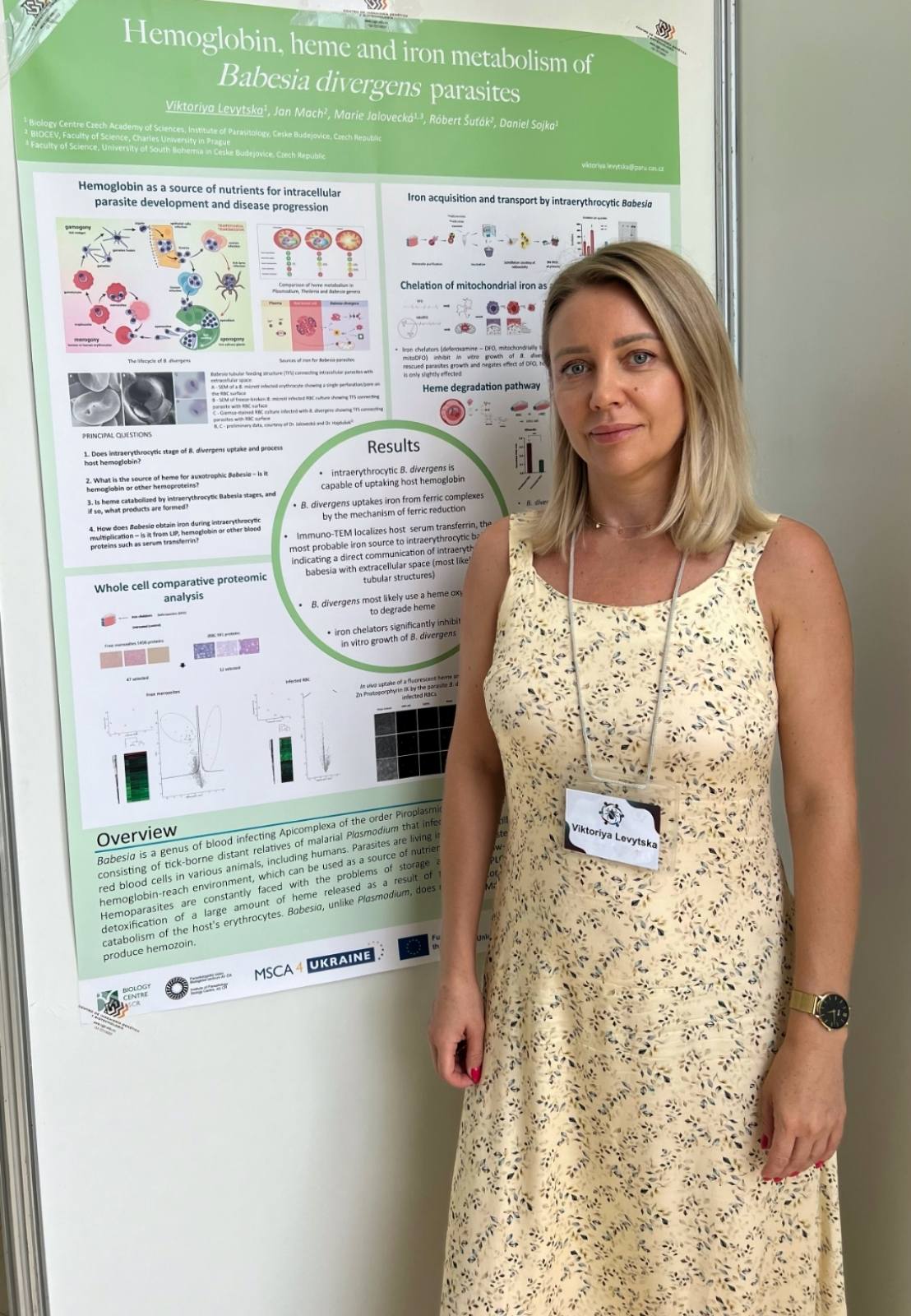 Під час конференції Вікторія Левицька виступила з доповіддю на тему «Метаболізм гемоглобіну, гему та заліза за паразитування Babesia divergens», у якій детально висвітлила молекулярні механізми, що впливають на метаболізм паразитичного збудника. Її дослідження викликало значний інтерес серед наукової спільноти, адже воно відкриває нові перспективи у вивченні біології паразитів і потенційно сприятиме розробці нових методів боротьби за бабезіозу.