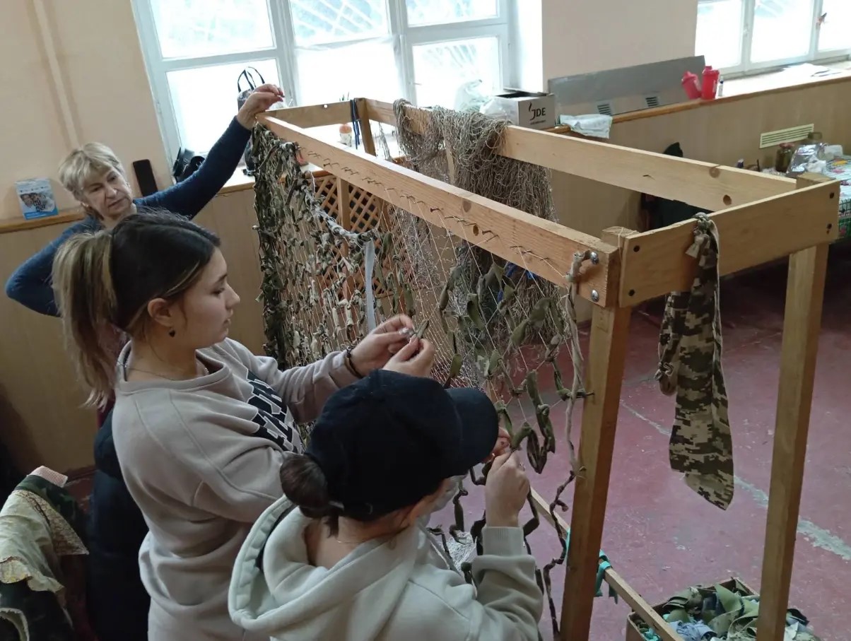 Активні здобувачі вищої освіти відвідують волонтерську організацію "Подоляни" та щоденно долучаються до створення маскувальних сіток
