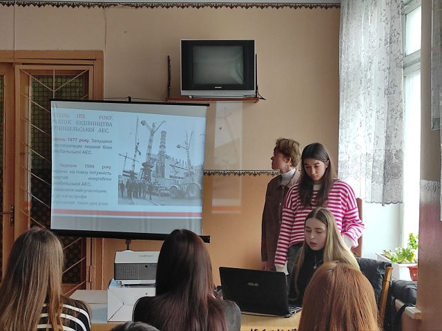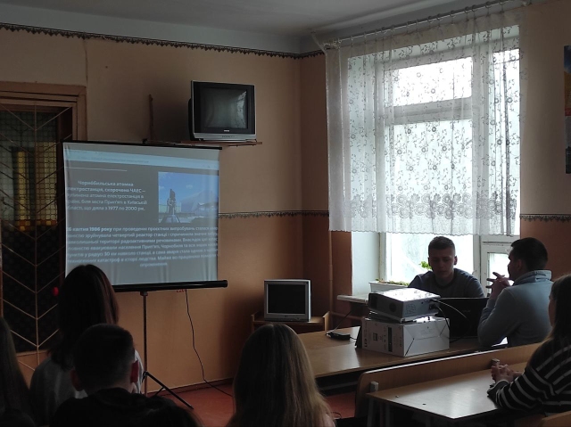 Розпочався захід хвилиною мовчання, якою вшанували пам'ять загиблих ліквідаторів аварії на Чорнобильській атомній станції. Присутнім були презентовані доповіді, в яких було розкрито актуальні проблеми, пов'язані із причинами та наслідками аварії на ЧАЕС за історичним, екологічним, соціальним та політичним напрямком. Зокрема, студенти Микола ЛІСОВСЬКИЙ та Тарас ПЕРХАЛЮК у своїй доповіді «Герої-ліквідатори Чорнобильської аварії» розповіли про героїчний вчинок 600 000 ліквідаторів, які брали участь у гасінні пожеж і розчищенні завалів, отримали високі дози радіації. Оскаженілий мирний атом. Ми вже ніколи не дізнаємося, що було б із країною і нами усіма, якби 26 квітня 1986 року, в перші години й хвилини після аварії на Чорнобильській АЕС, вони не вступили в майже безнадійний двобій із вогнем. І хоч відтоді вже минуло багато років, виросло два покоління і нові трагедії затьмарили жертвами старі, згадали знову поіменно тих, хто тоді, в 1986-у, першим увійшов у атомне полум`я, і вже не повернувся.