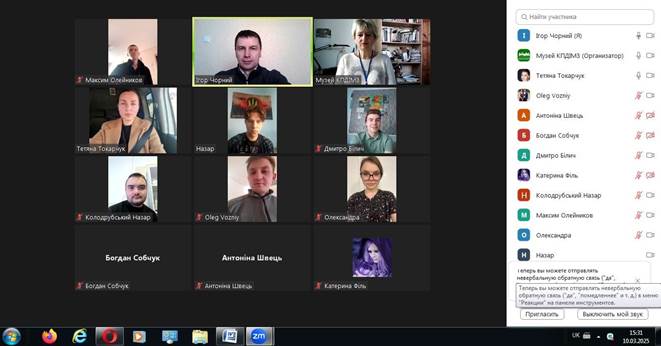 10 березня студентам ФВМТТ спеціальності 211 «Ветеринарна медицина» ЗВО «ПДУ» була проведена музейна година на тему: «Кобзар у Кам’янці» (куратори: Ігор ЧОРНИЙ і Тетяна ТОКАРЧУК).