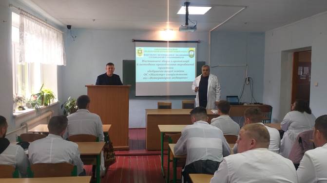 Ведучі викладачі профільних навчальних дисциплін ознайомили здобувачів із питаннями, які потрібно засвоїти згідно програми практики, та висвітлити у звіті і щоденнику: канд. с.-г.наук, доцент Руслан КОЛІНЧУК ( розділ «Внутрішні хвороби тварин»); канд. біол. наук, доцент Олександр БОДНАР (розділ «Хірургія»); канд. с.-г.наук, доцент Сергій ПРОСЯНИЙ (розділ «Ветеринарно-санітарна експертиза та гігієна виробництва харчових продуктів тваринного та рослинного походження, їх безпечність та якість»); канд. біол. наук, доцент Андрій МУШИНСЬКИЙ ( розділ «Паразитологія та інвазійні хвороби»); канд. вет. наук, доцентка Тетяна ЗАХАРОВА (розділ «Організація ветеринарної справи»); канд. вет. наук, доцентка Тетяна КАРЧЕВСЬКА (розділ «Епізоотологія та інфекційні хвороби»); канд. вет. наук, доцент Василь СМОЛЯК (розділ «Патологічна морфологія та розтин»); асистент Володимир МІЗИК (розділ «Акушерство, гінекологія та біотехнологія відтворення тварин»); канд. вет. наук, доцентка Світлана ЛАЙТЕР-МОСКАЛЮК (розділ «Забезпечення концепції «Єдине здоров’я» та правові основи діяльності лікаря ветеринарної медицини)».