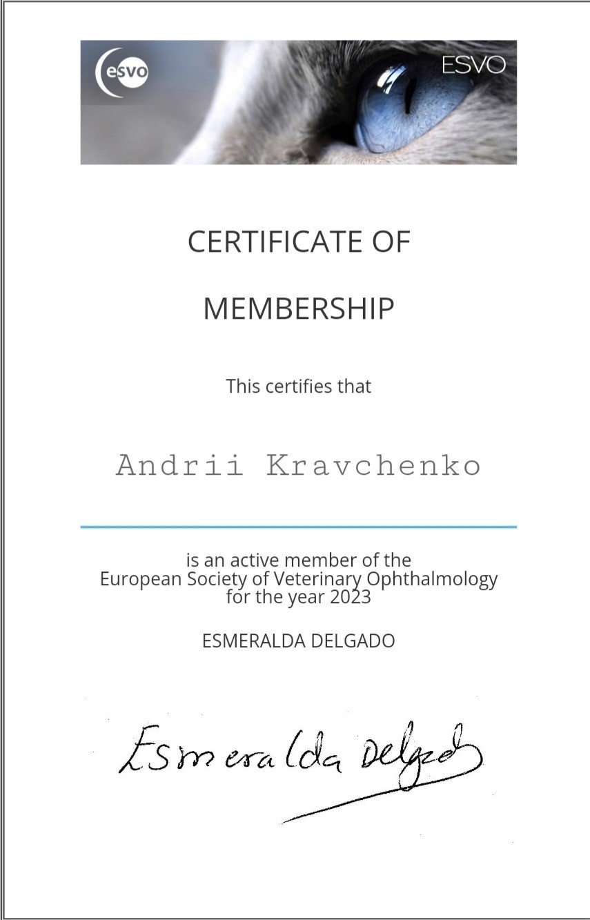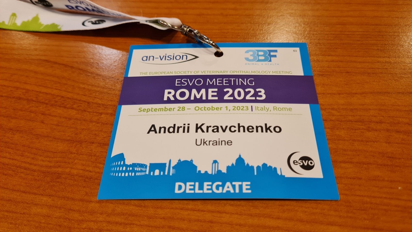 З 28 вересня по 1 жовтня 2023 року, в м. Рим, Італія, пройшла щорічна офтальмологічна ветеринарна конференція ESVO Meeting Rome 2023. Організатор Европейська Спілка Ветеринарних Офтальмологів (Euuropean Society of Veterinary Ophthalmology).