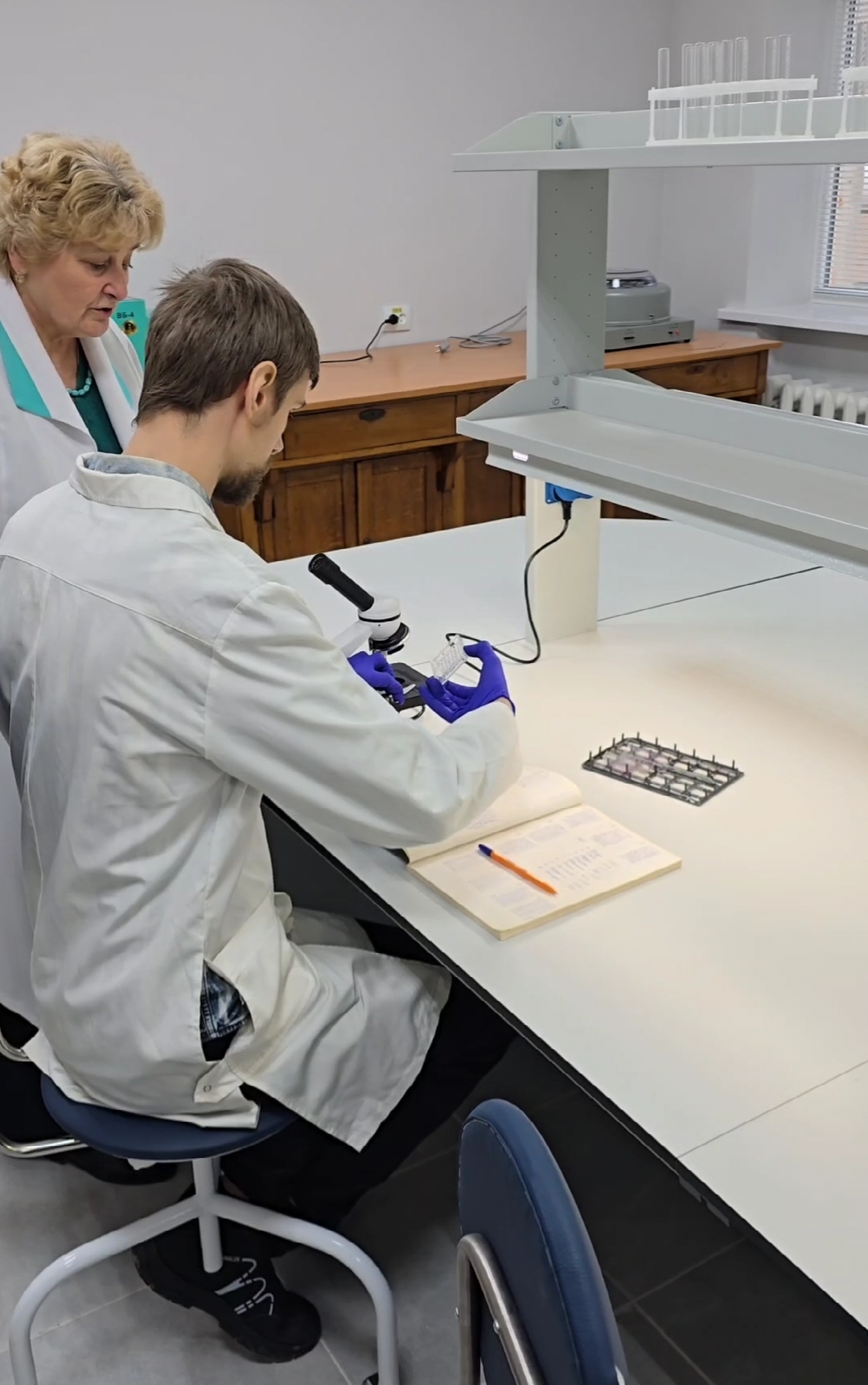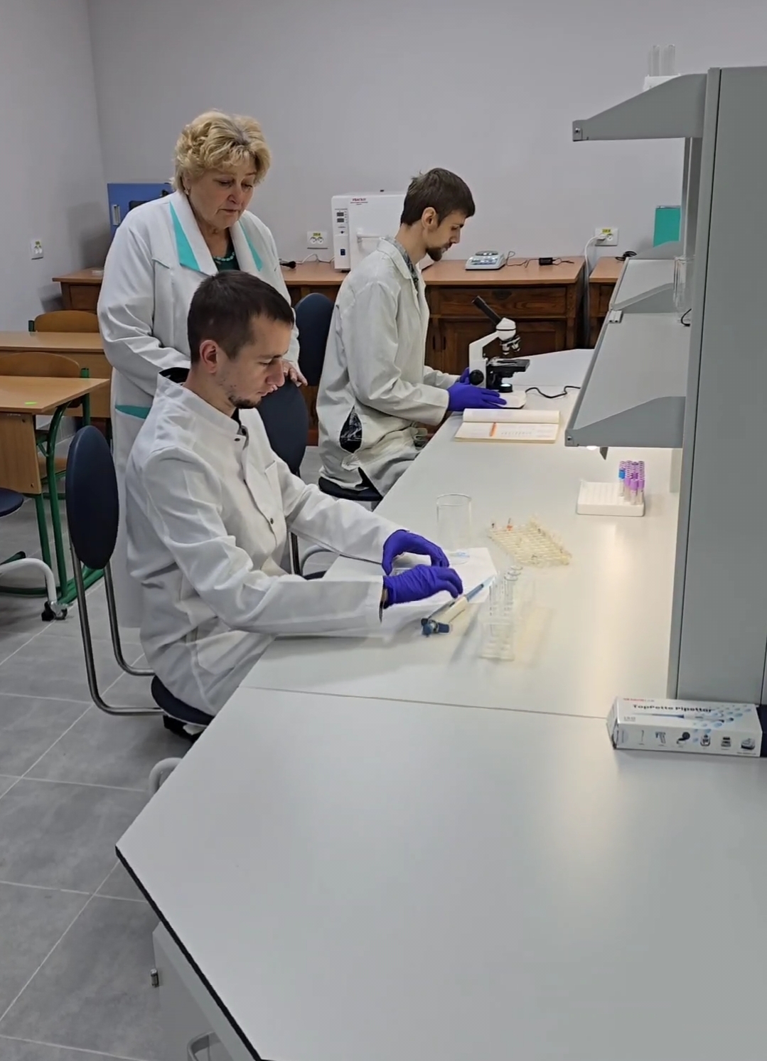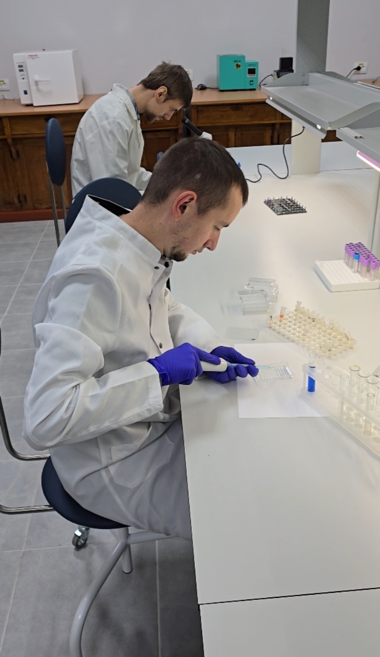 Аспіранти факультету ветеринарної медицини і технологій у тваринництві мають можливість частину своїх досліджень проводити у міжкафедральній науково-навчальній лабораторії. Так, молоді дослідники Василь БАНДУРА та Руслан ЧУМАКОВ проводили серологічну реакцію по визначенню антигенного спектру класу І головного комплексу гістосумісності у собак. Всі хребетні тварини мають комплекс, здатний розпізнавати, руйнувати патогени та розвивати імунологічну пам’ять на мікроорганізми, які потрапили в організм, шляхом активації клітин і молекул системи імунітету. Головний комплекс гістосумісності (ГКГ) – велика родина генів та відповідна область геному більшості хребетних, яка відіграє важливу роль у функціонуванні імунної системи. Молекули ГКГ виконують роль своєрідних «антен», які дозволяють організму розпізнавати власні та чужорідні клітини (бактерії, віруси, ракові клітини) і, при необхідності, запустити імунну відповідь, забезпечуючи утворення специфічних антитіл і видалення чужорідного агенту з організму.