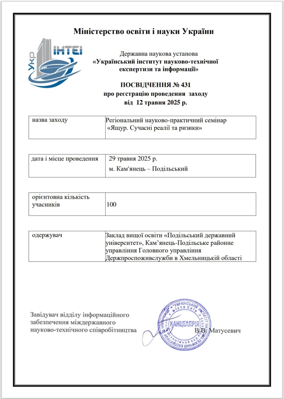 На факультеті ветеринарної медицини і технологій у тваринництві відбувся науково-практичний семінар на тему: «Ящур. Сучасні реалії та ризики» ( Посвідчення УкрІНТЕІ № 431 від 12.05.25 р.). Захід був організований за ініціативи кафедри інфекційних та інвазійних хвороб з метою обговорення актуальних загроз, що постають перед ветеринарною спільнотою у зв’язку з ризиками поширення ящуру. Ящур є одним з найбільш заразних інфекційних захворювань серед тварин, здатних до широкого міждержавного розповсюдження в панзоотичних масштабах і має виняткове значення для економіки, торгівлі і продовольчої безпеки багатьох країн, в тому числі і для України. Небезпечна ця хвороба також і для людини. Враховуючи нинішню епізоотичну ситуацію щодо ящуру в деяких європейських країнах, що межують з нашою державою, тема науково-практичного семінару є досить актуальною та обґрунтованою.