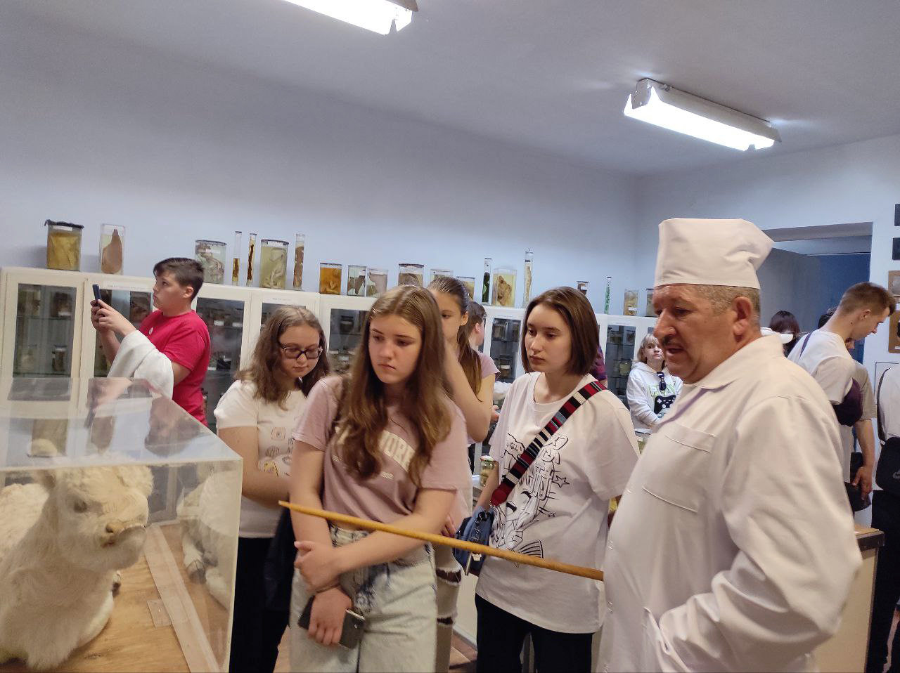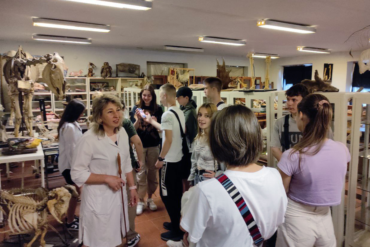 Далі був музей «Зоології» (асистент Світлана ЛІЩУК) із цікавими детальними експонатами представників фауни нашого регіону та «Остеологічний музей» (доцент Любов САВЧУК) із музейними експозиціями, представленими такими тематичними секторами: «Остеологія», «Міологія», «Синдесмологія», «Система органів шкірного покриву», «Система органів травлення», «Система органів дихання», «Система органів сечовиділення та розмноження», «Система органів крово- і лімфообігу», «Нервова система та органи чуттів», «Система органів внутрішньої секреції» та «Будова тіла свійської птиці»