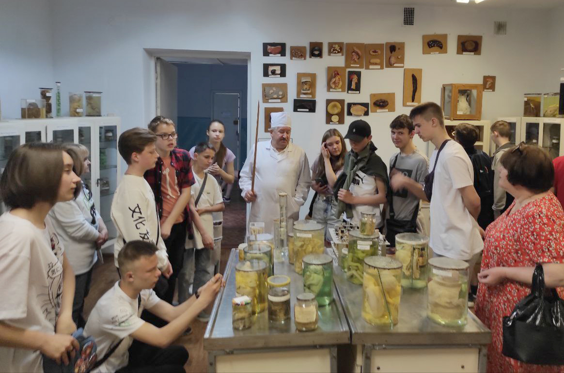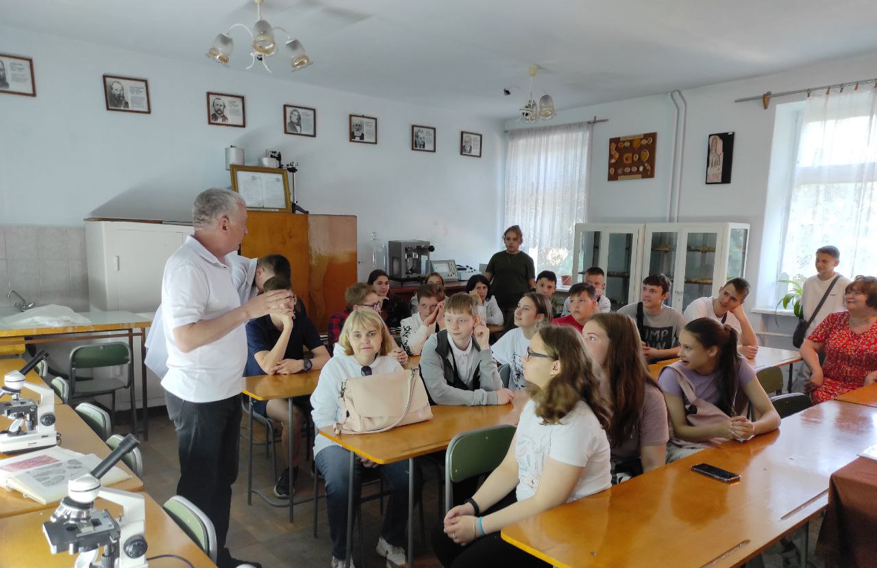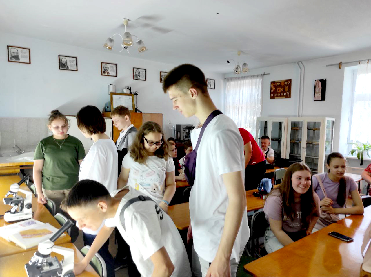 Розпочав екскурсію по музею «Патологічної анатомії» доцент кафедри Василь СМОЛЯК, а згодом, учні перемістилися у наукову лабораторію гістології і цитології (викладач Володимир ДОБРОВОЛЬСЬКИЙ) та роздивлялися препарати під мікроскопом.