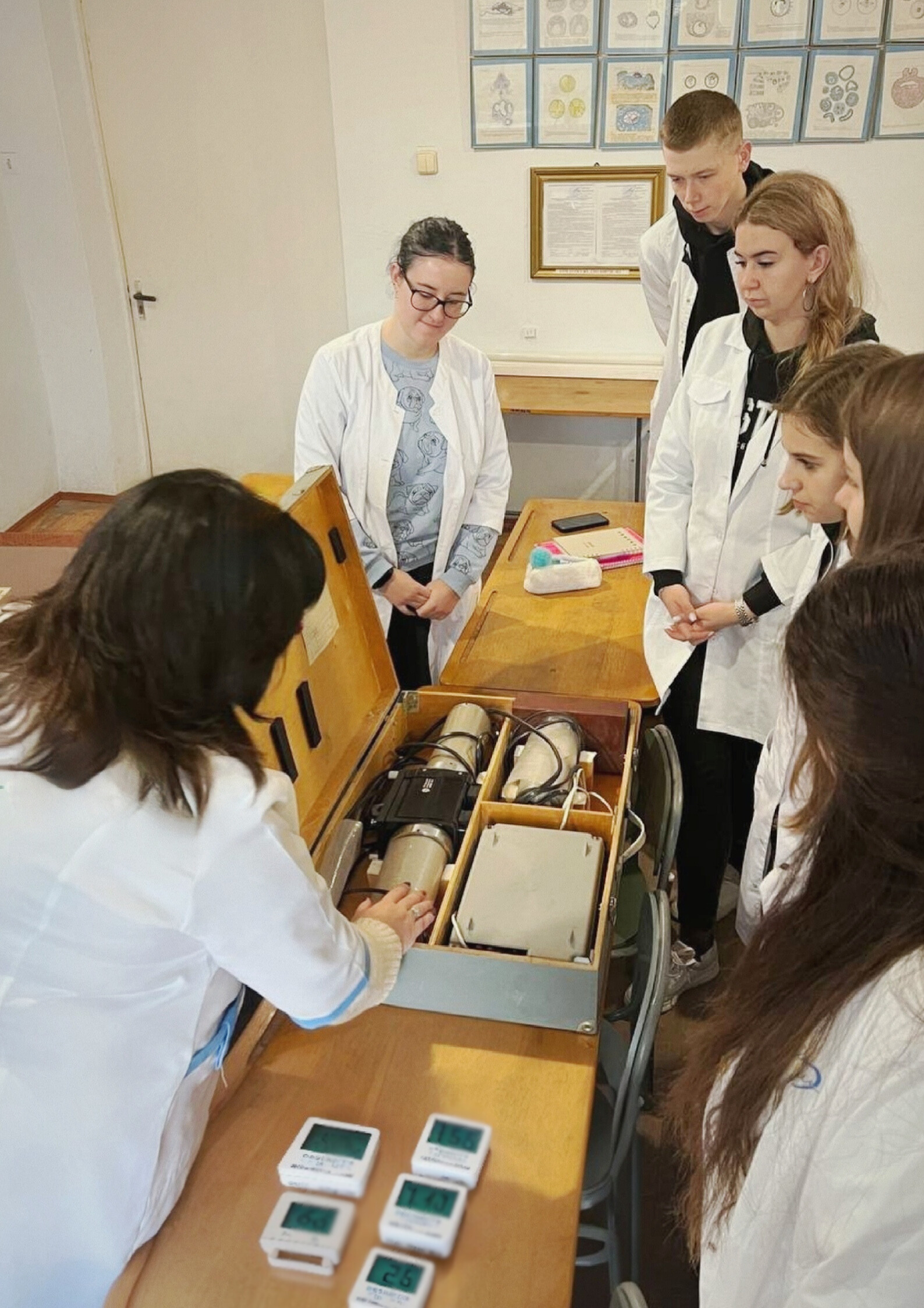 Одразу після цього студенти перейшли до практичної частини, де мали можливість не лише ознайомитися з теорією, але й власноруч попрацювати з сучасними дозиметрами та радіометрами. Практична частина була насичена роботою з лабораторними приладами, що дозволило їм провести реальні вимірювання рівня радіаційного фону.