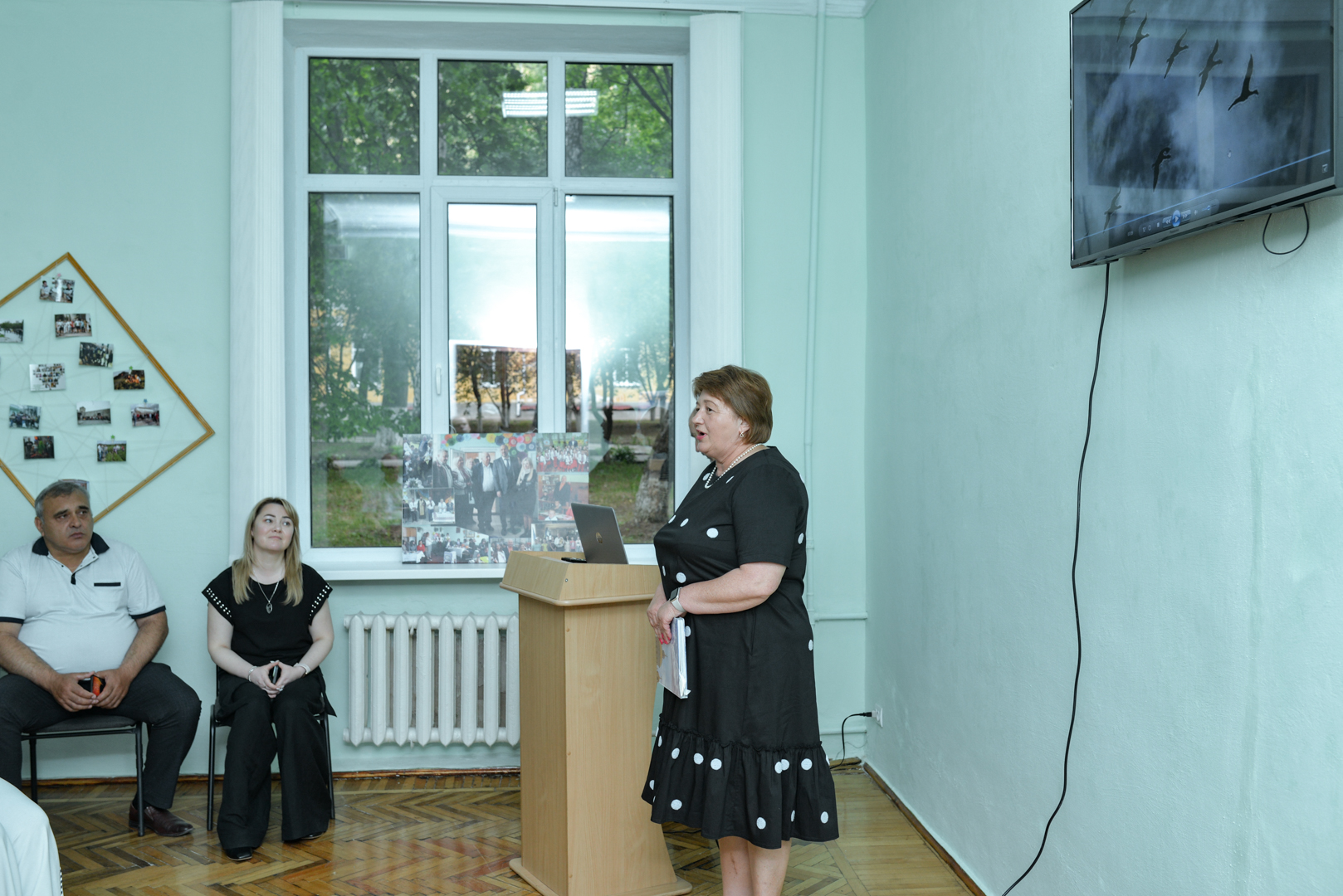 Презентувати книгу спогадів в стінах нашого закладу приїхала дружина Петра Васильовича Орися Книшук разом із упорядником Валентиною Близнюк. На початку зустрічі до присутніх із привітальним словом звернувся ректор ЗВО «ПДУ», доктор економічних наук, професор Володимир Васильович Іванишин, який поділився із випускниками нинішніми здобутками нашого університету і навіть деякими найбільш пам’ятними моментами свого життєвого шляху. Дуже щирим був також виступ і проректора з навчальної, науково-інноваційної та міжнародної діяльності, докторки економічних наук, професорки Оксани Антонівни Бялковської.