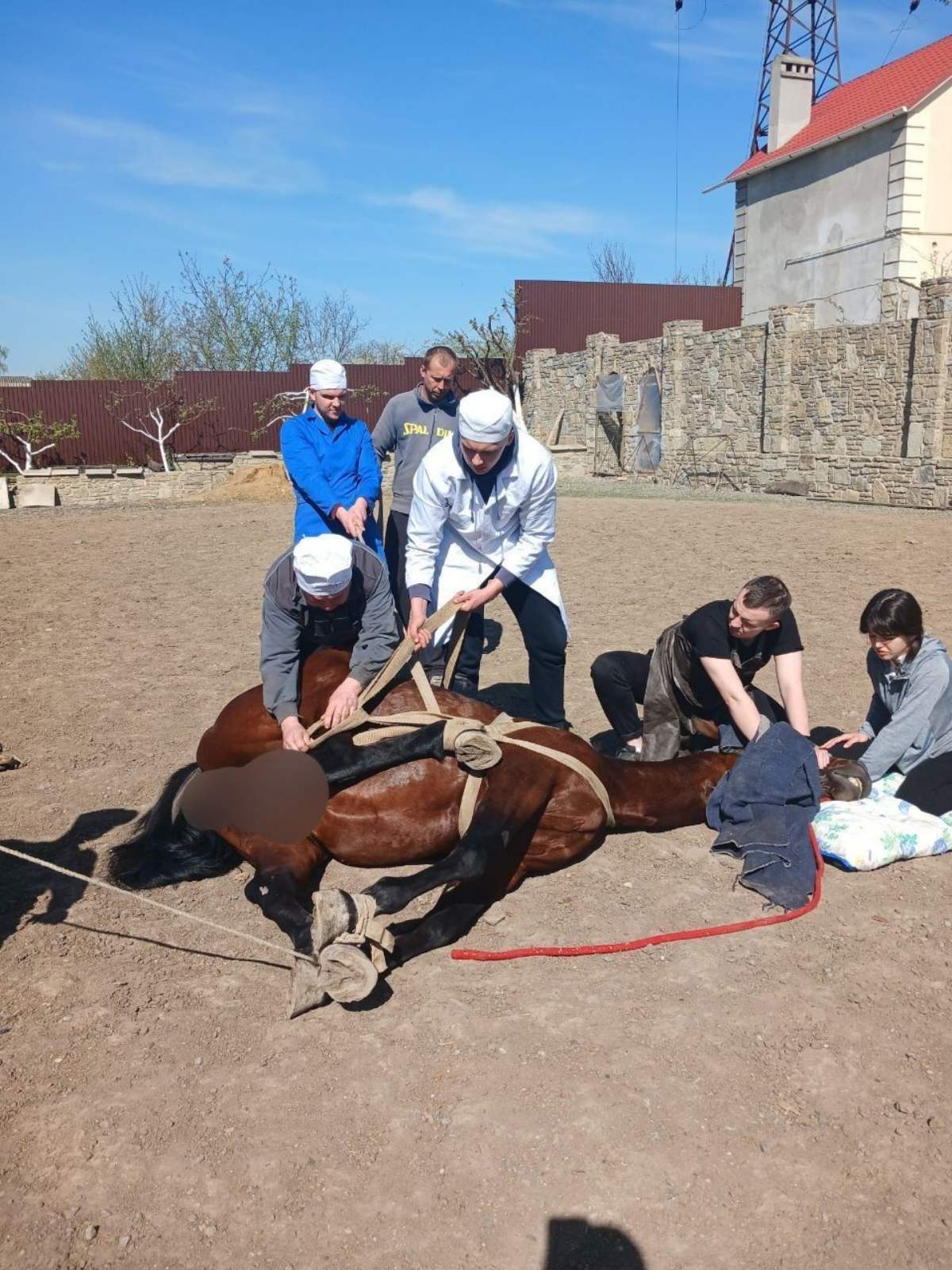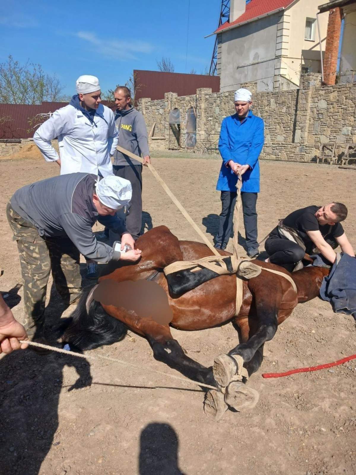 Під час проведення практичного заняття студентського наукового гуртка «Хірургічна допомога» здобувачі вищої освіти під керівництвом асистента Олександра БОДНАРА провели кастрацію жеребця. Попередньо був проведений інструктаж з техніки безпеки та наголошено на недопустимість грубого поводження з твариною.