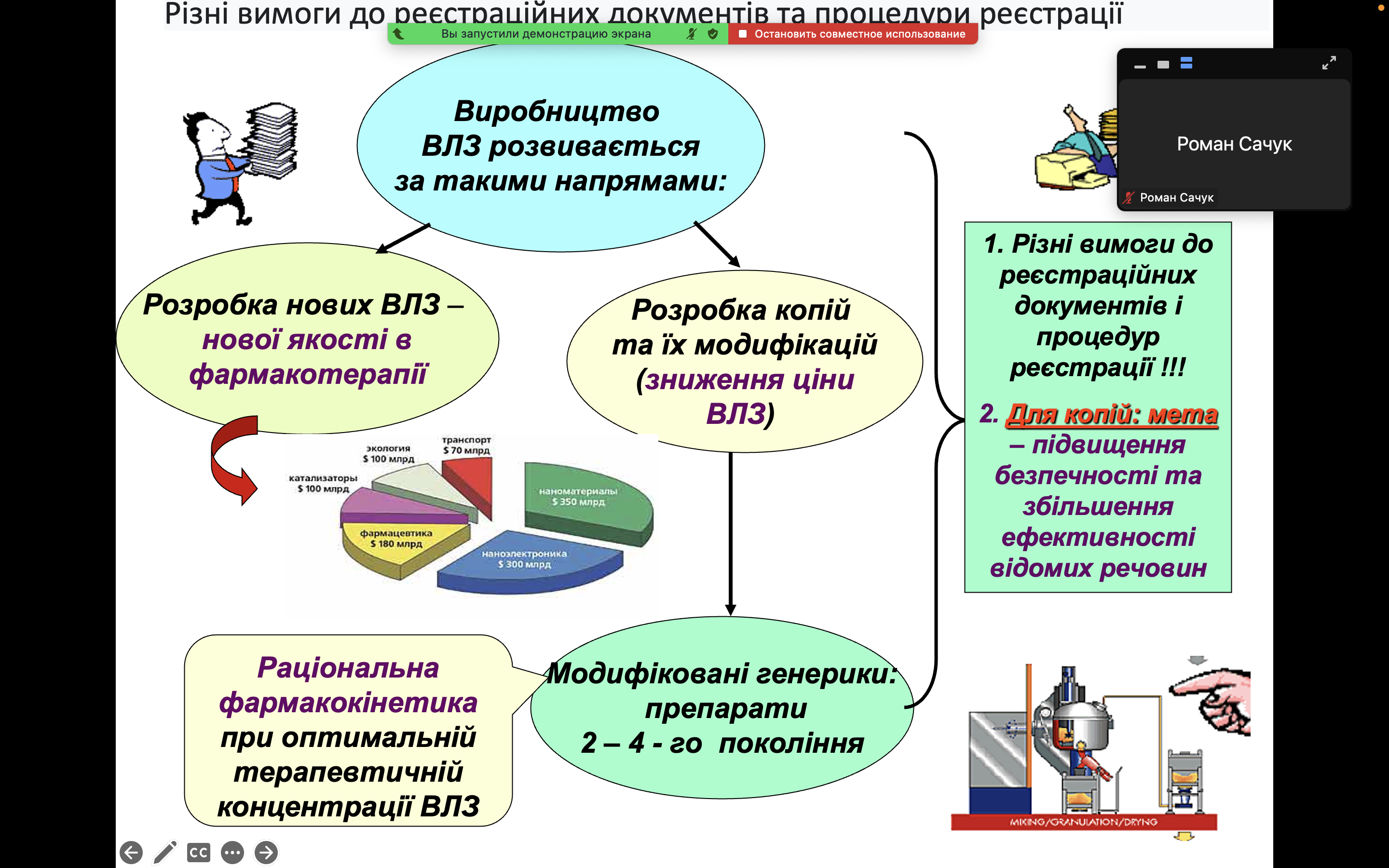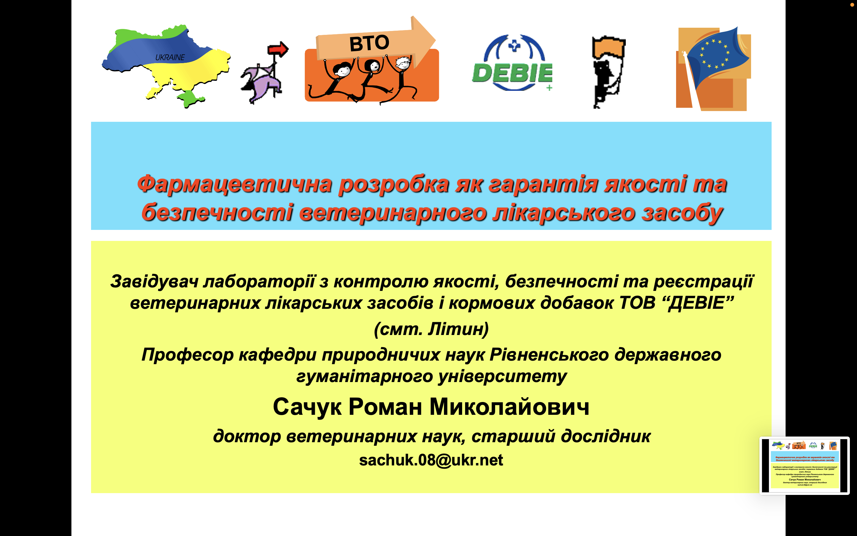 Під час лекції було розглянуто такі ключові теми: етапи фармацевтичної розробки ветеринарних лікарських засобів: від ідеї до виходу на ринок; контроль якості та безпечності: сучасні методи оцінки ефективності та нешкідливості ветеринарних препаратів; роль регуляторних органів: вимоги до реєстрації лікарських засобів у ветеринарній медицині; лабораторний контроль: значення досліджень на всіх етапах виробництва; перспективи розвитку ветеринарної фармацевтики: інновації та новітні тенденції в галузі.