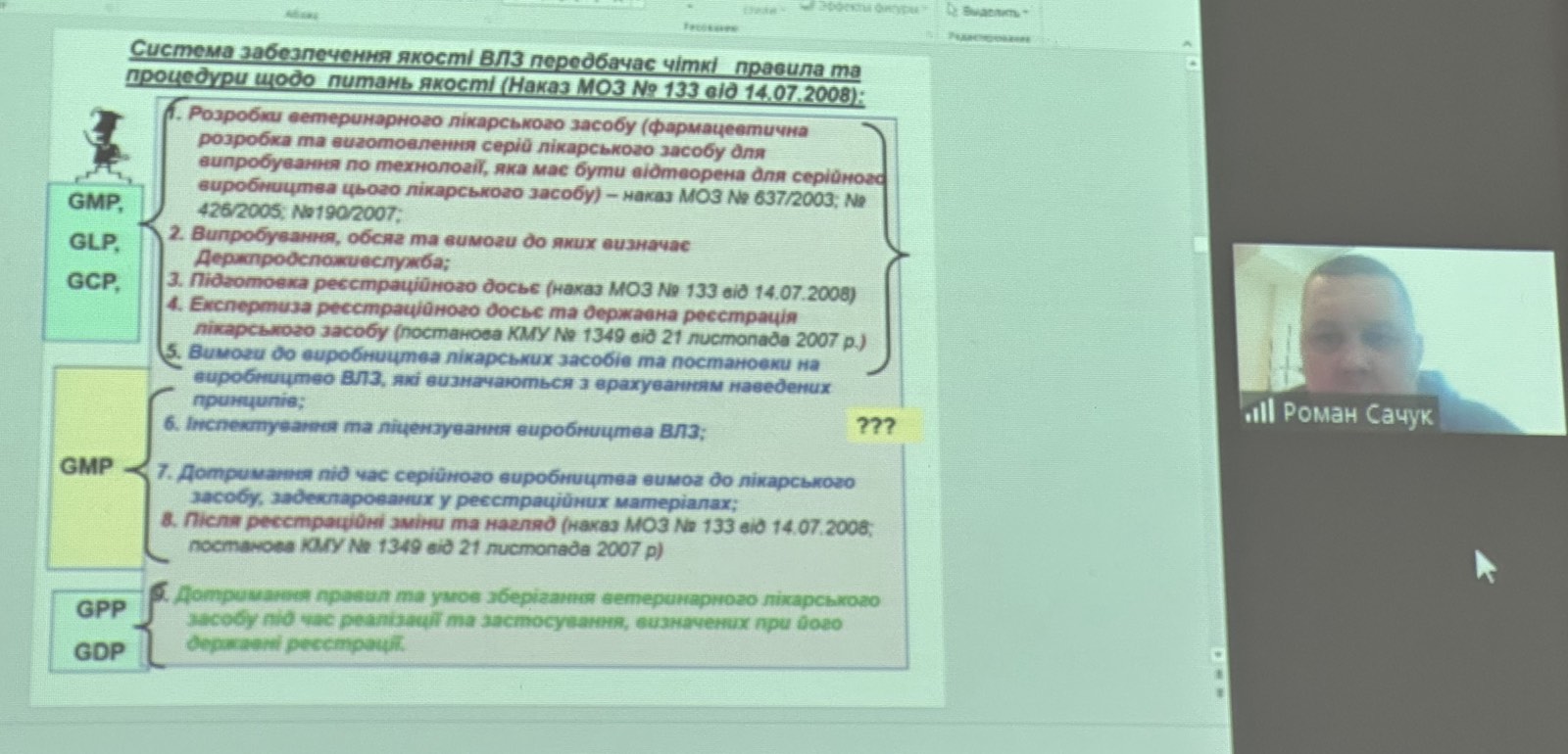 Сучасна ветеринарна медицина неможлива без якісних і безпечних лікарських засобів. Процес їх розробки та впровадження вимагає дотримання високих стандартів, щоб гарантувати ефективність, безпечність та відповідність законодавчим вимогам. Саме цим аспектам була присвячена гостьова лекція доктора ветеринарних наук, професора Романа САЧУКА, прочитана для здобувачів спеціальності «Ветеринарна медицина».