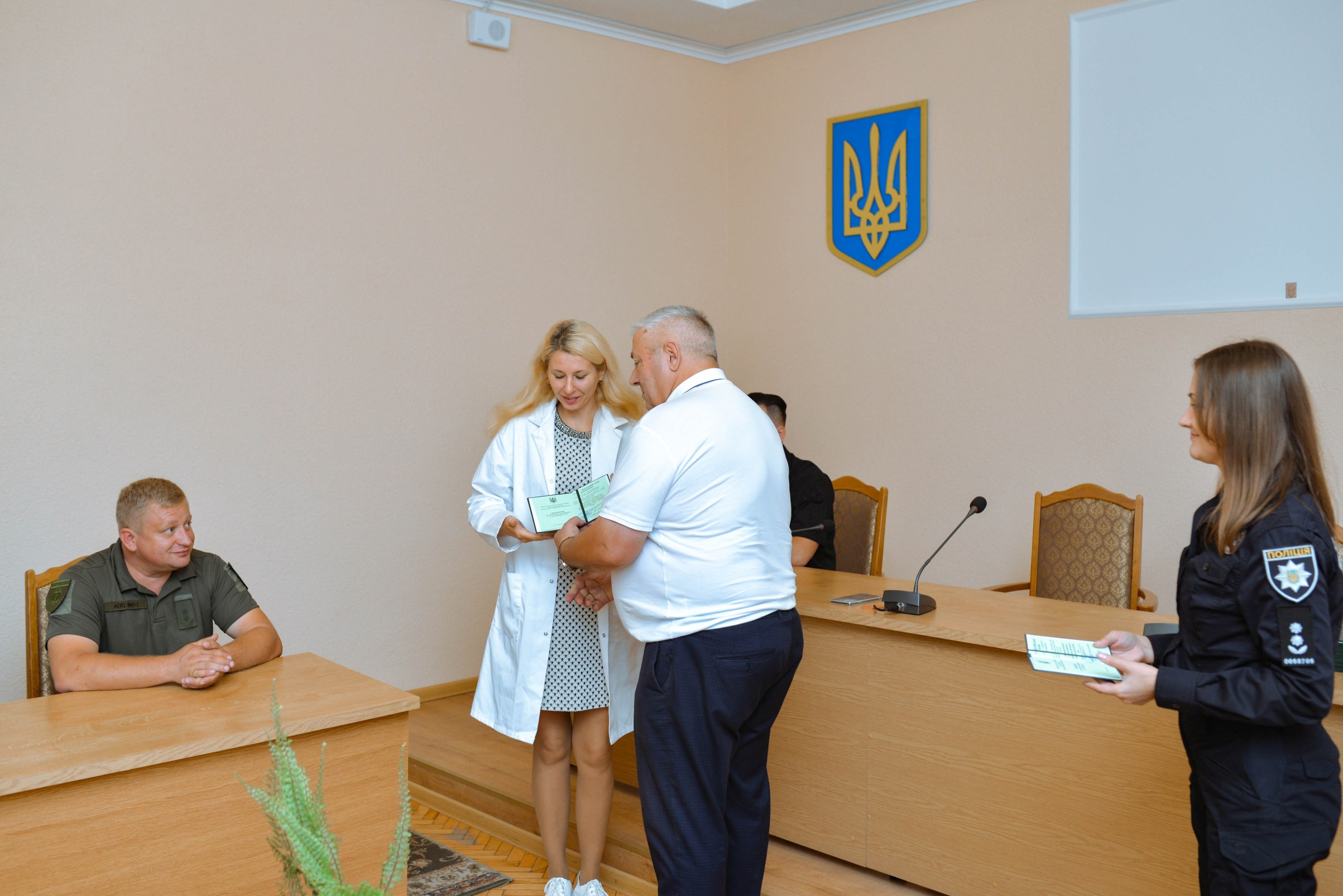 Відповідно пройшли тестування та отримали сертифікати підвищення кваліфікації. На вручення яких прибули Світлана КОЛОМІЄЦЬ - начальник відділу кінологічної діяльності національної поліції України та Андрій ЧАЙКОВСЬКИЙ - заступник начальника Головного управління Національної поліції в Хмельницькій області, які привітали усіх із завершенням навчально-методичних зборів.