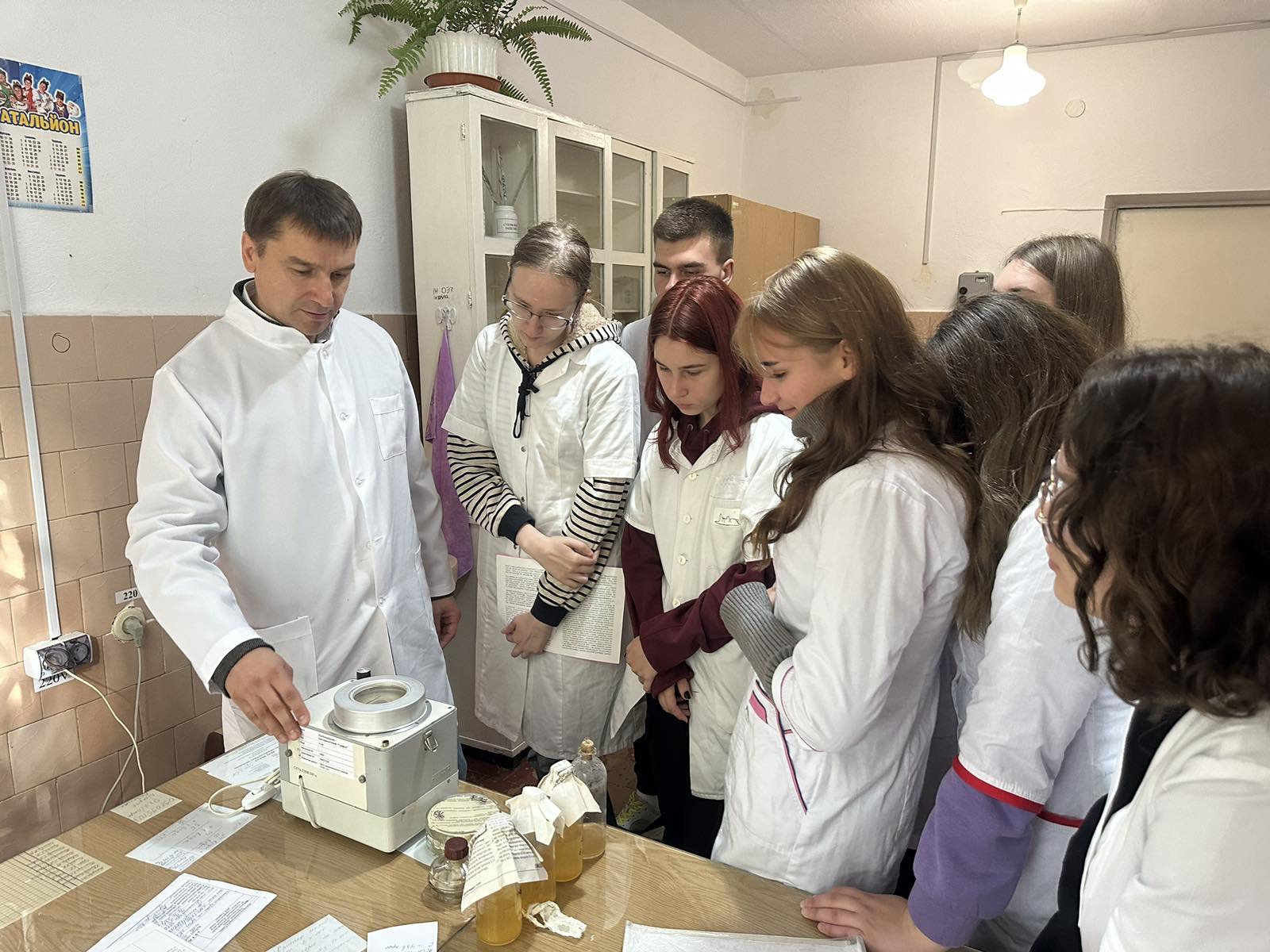 Здобувачі вищої освіти, під керівництвом викладача Ігоря ЧОРНОГО та завідувача бактеріологічною лабораторією, лікаря-бактеріолога Юлії МАГДЮК, ознайомились з правилами відбору і пересилки до бактеріологічної лабораторії проб води, ґрунту та практично опрацювали методи санітарно- бактеріологічного дослідження води, повітря, грунту. Користуючись відповідними методиками, проводили посіви для визначення загальної кількості бактерій, показників колі-титру, колі-індексу у воді, ґрунті. Окрім цього, визначали забрудненість повітря за допомогою седиментаційного та аспіраційного методів. Здобувачі вищої освіти брали безпосередню практичну участь у лабораторному занятті, мали можливість ставити актуальні запитання до викладача та лікаря-бактеріолога, на які отримали вичерпні та змістовні відповіді. Такий формат проведення занять є значно ефективнішим для здобувачів вищої освіти за формою та змістом на противагу традиційним заняттям. Викладений інформаційний матеріал за темою заняття передбачав використання новітніх інноваційних підходів до проведення лабораторних досліджень й викликав жвавий інтерес у здобувачів.
