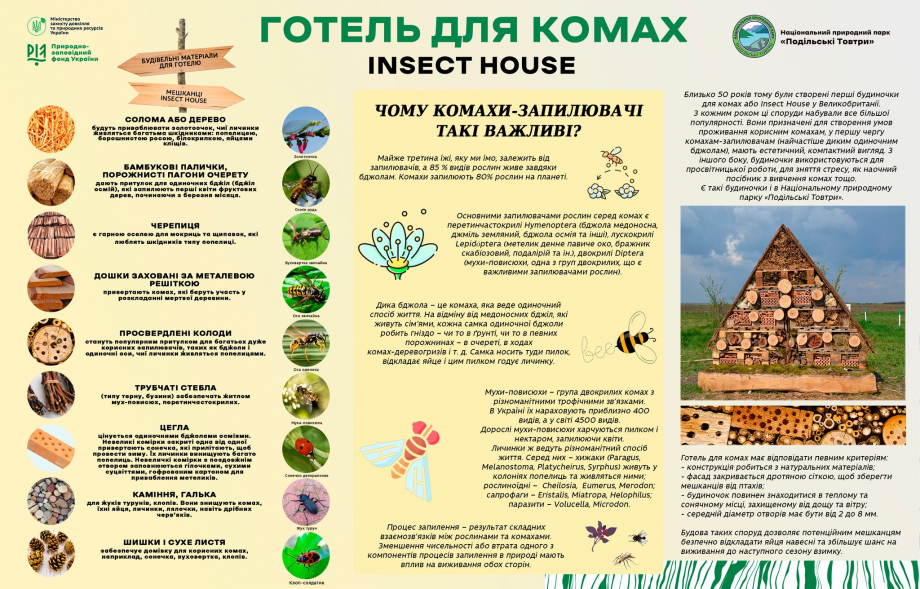 «Зникнення оселищ існування, зменшення харчової бази, глобальне потепління та зміна клімату, поширення хвороб і паразитів, масове використання аграріями пестицидів – через ці чинники комахи, завдяки тихій праці яких існує до 80 % рослин, потребують нашої підтримки. Будиночки сприяють збільшенню біорізноманіття. Вони слугують прихистком для комах, які запилюють рослини або регулюють кількість шкідників культурних рослин», – оповіла науковиця.