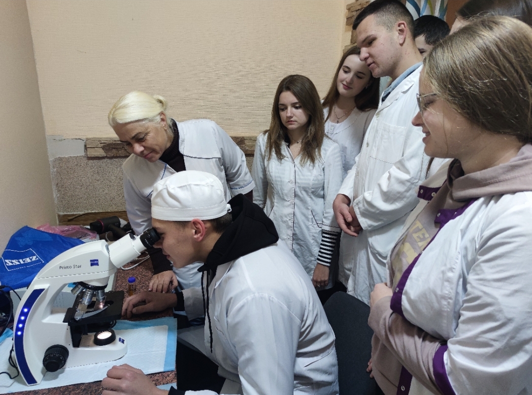 Здобувачі також мали змогу взяти участь у дослідженнях під мікроскопом зразків крові хворих тварин та виділенні чистих культур збудників дерматомікозів на спеціальних живильних середовищах.