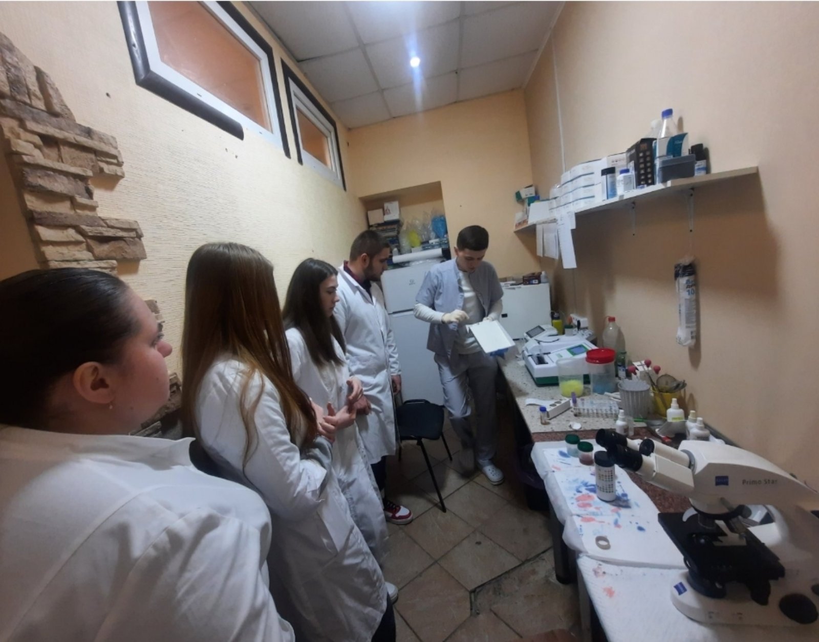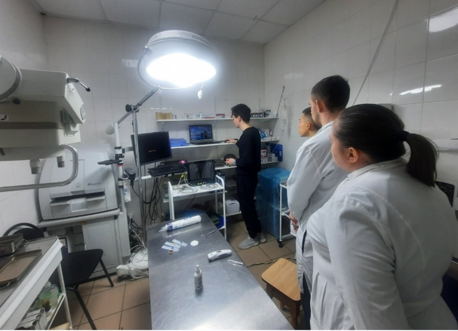 На останньому засіданні наукового гуртка "Клінічна діагностика", яке провела викладач кафедри ветеринарного акушерства, внутрішньої патології та хірургії Тамара Бетлінська, здобувачі вищої освіти другого (магістерського) рівня, що навчаються за спеціальністю 211 "Ветеринарна медицина", досліджували серцево-судинну систему та систему дихання у тварин на базі ветеринарної клініки, що обладнана сучасними приладами для проведення точної діагностики хвороб тварин. Здобувачі відпрацювали клінічні методи обстеження пацієнтів, лабораторні методики дослідження крові та сечі тварин, за допомогою яких встановлюють остаточний діагноз.