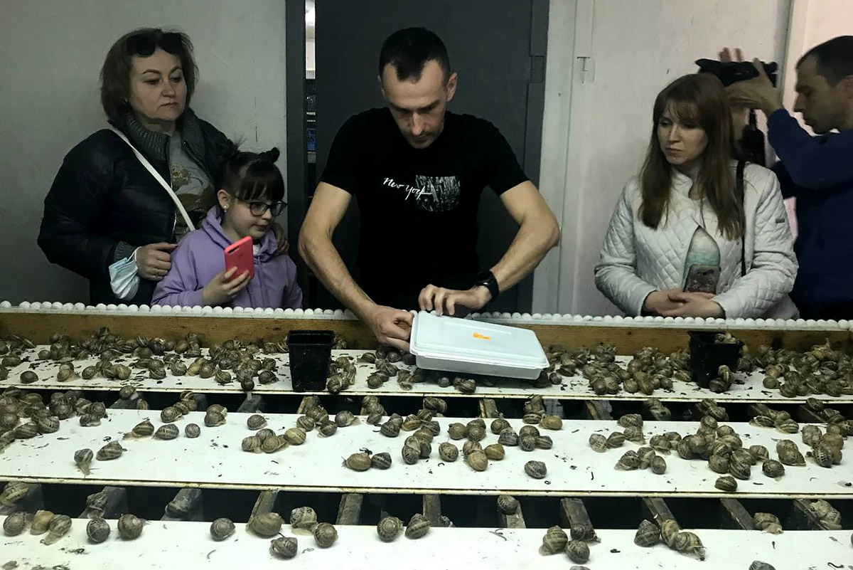 Екскурсантам вдалося пізнати дивовижний світ равликів. Цікава та пізнавальна екскурсія по равликовій фермі із Сергієм Ланчуком, власником ферми, не залишила байдужим нікого. Знайомство з процесом вирощування молюсків та цікавими фактами про них стимулює наших слухачів задуматися над можливістю пошуку, на перший погляд, незвичних та малоймовірних ідей для власної справи.