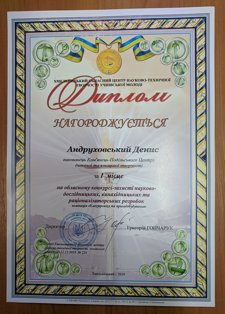 За недовгий період функціонування гуртків вже є значне досягнення: на обласному конкурсі-захисті науково-дослідних, винахідницьких та раціоналізаторських розробок в м. Хмельницькому, який відбувся у грудні 2019 року, в номінації “Електроніка та приладобудування” пристрій для оптимізації роботи сонячних батарей (розробник Денис Андруховський) посів перше місце.