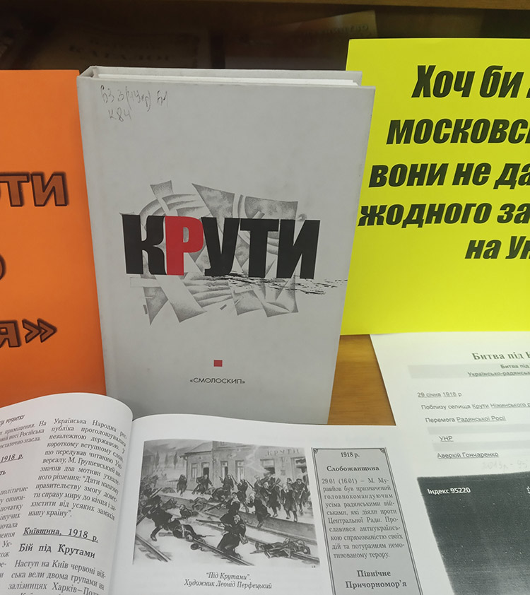 P. s. У науковій бібліотеці Закладу вищої освіти «Подільський державний університет» діє виставка книг і документів, присвячені битві під Крутами 29 січня 1918 р.