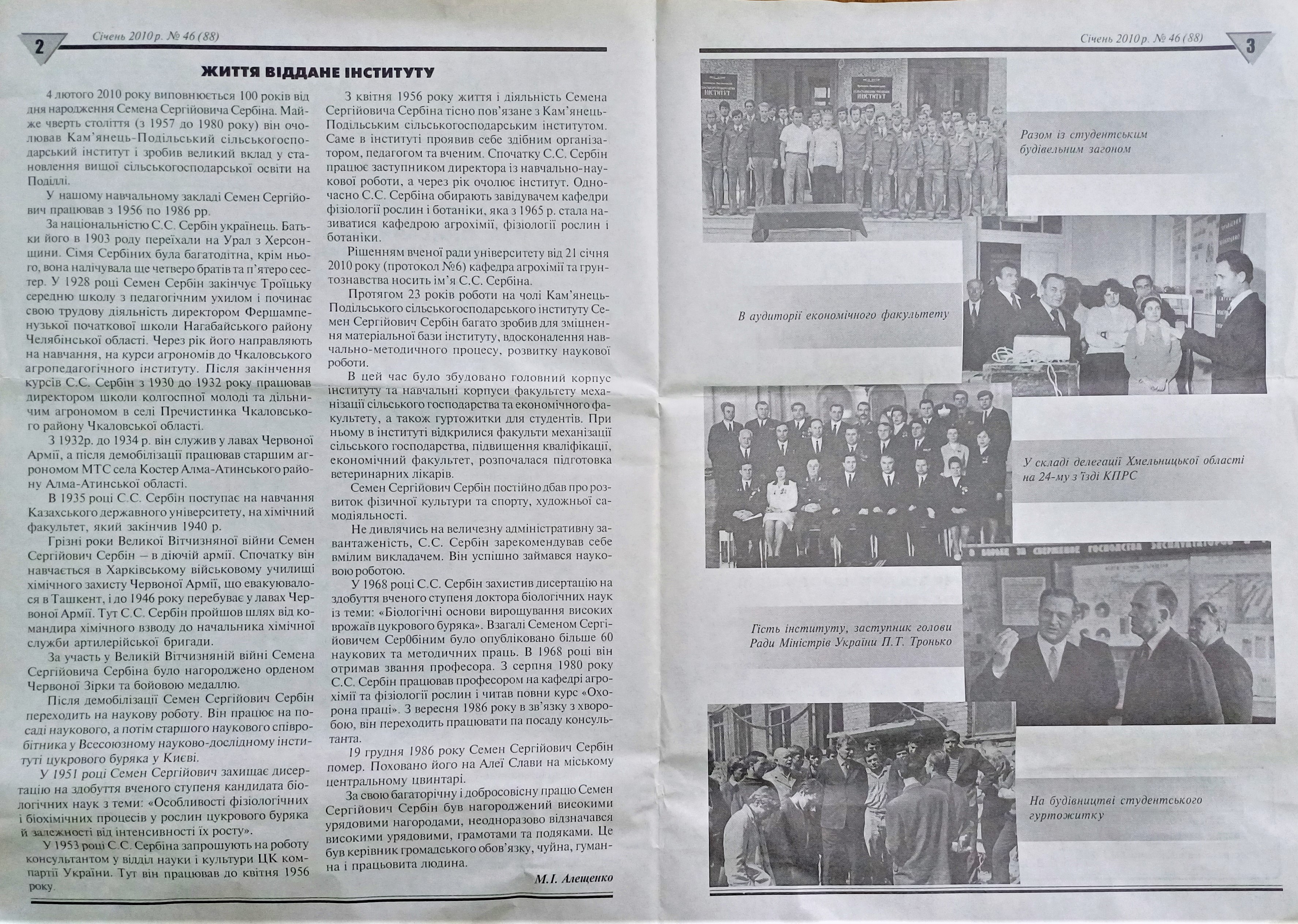 04 лютого 2025 року працівники Наукової бібліотеки ЗВО «ПДУ» взяли участь у годині пам’яті з нагоди 115-річчя від дня народження Семена Сергійовича СЕРБІНА, доктора біологічних наук, професора, ректора Кам'янець-Подільського сільськогосподарського інституту в 1957 – 1980 роках (нині – Заклад вищої освіти «Подільський державний університет»).