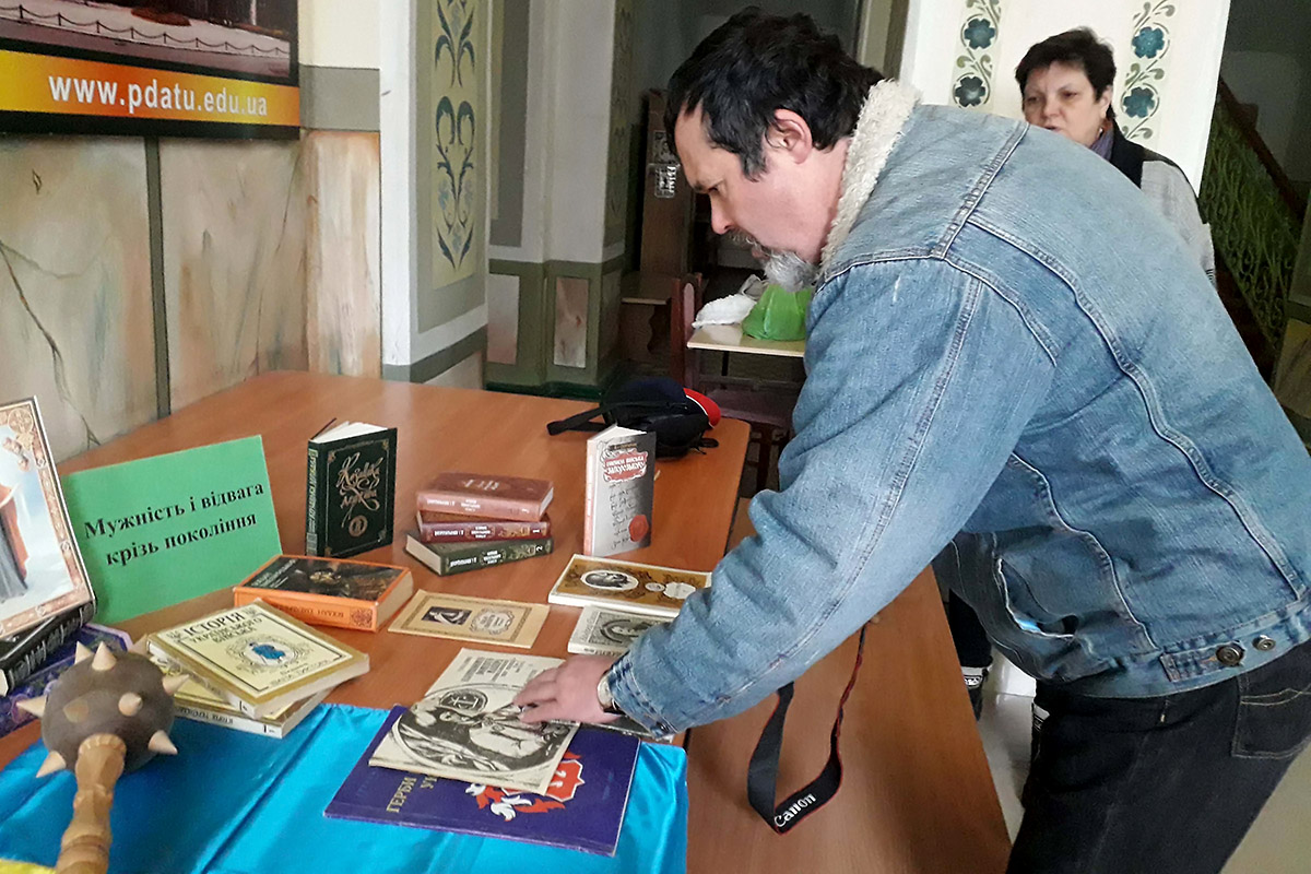 Продовжуючи традиції і з нагоди Свята колектив наукової бібліотеки ПДАТУ створив книжкову виставку, присвяченому історії козацтва. Її сформовано з книг, що зберігаються в нашій книгарні. Приємно, що першими відвідувачами презентації стали студенти 1-го курсу спеціальностей «Економіка», «Агроінженерія» та «Ветеринарна медицина».