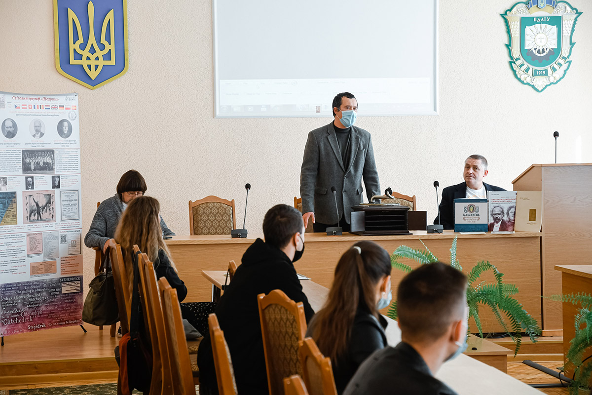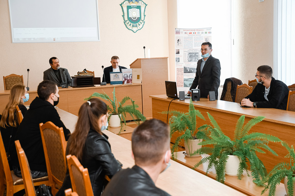 Валерій Нестеренко, доцент ПДАТУ, зупинився на складній життєвій долі видатного композитора і диригента, якого називають «українським Бахом». Його яскрава проукраїнська позиція не могла не дратувати комуністичну владу, зауважив він, тому в 1921 р. органами ВЧК було здійснено замах на Миколу Леонтовича.