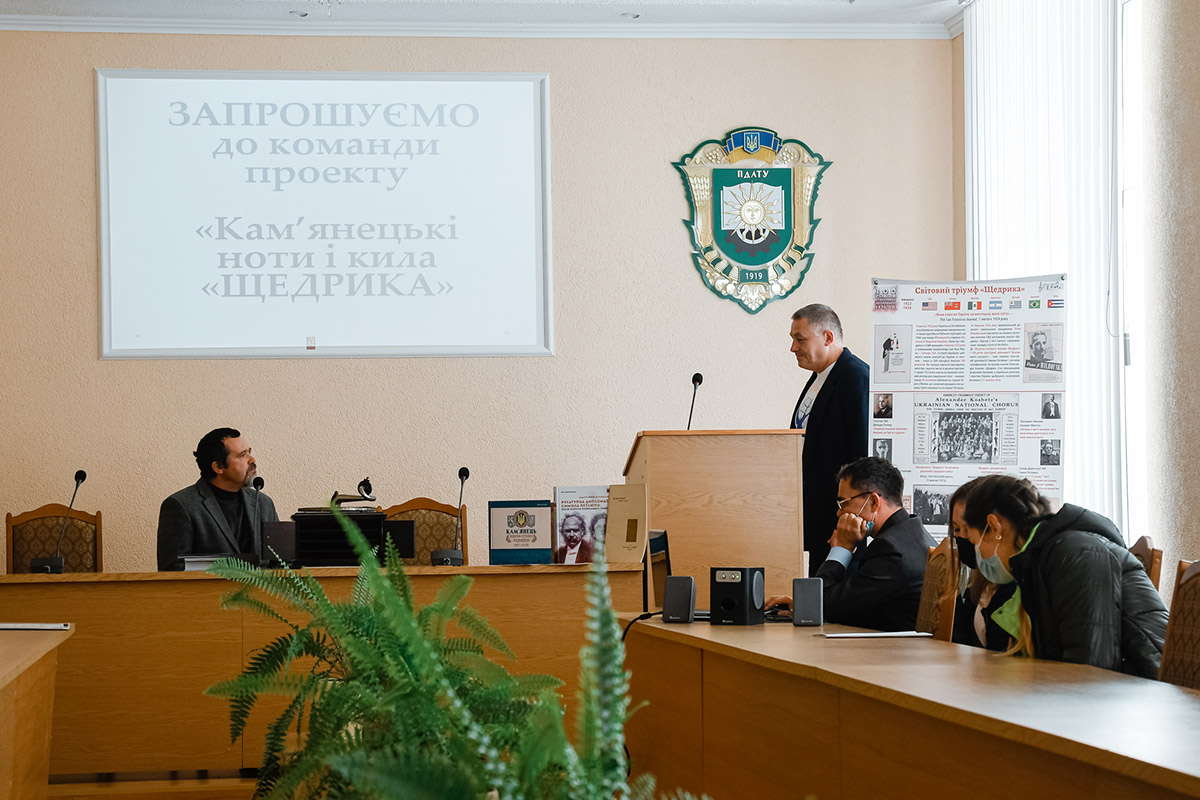 Справжньою «родзинкою» заходу, в якому брали участь студенти нашого університету, студенти коледжу ПДАТУ, викладачі, місцева громадськість, стала презентація Анатолієм Паладійчуком (автором і куратором проекту «Кам'янецькі крила і ноти «Щедрика») єдиного в Україні екземпляру платівки з першим записом виконання «Щедрика», здійсненого в Америці наприкінці 1920-х років. Присутні мали можливість прослухати раритетний запис на старовинному грамофоні, придбаному паном Анатолієм спеціально для цього.
