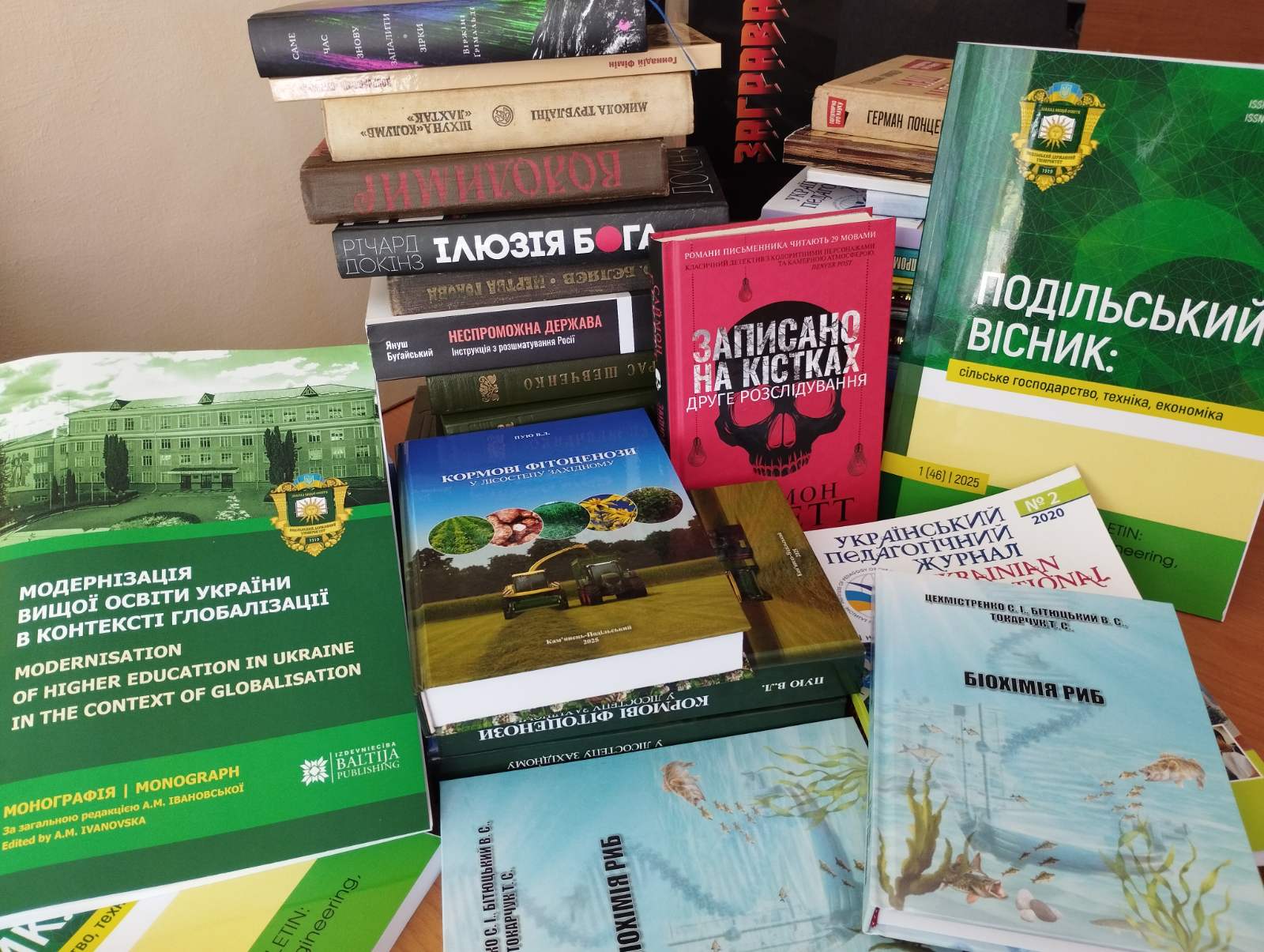 У цих складних умовах бібліотечні фонди нашої книгозбірні поповнюються в основному силами керівництва і професорсько-викладацького складу ЗВО «ПДУ». Зокрема, в травні та червні 2025 року бібліотечний фонд збагатився науковими, навчальними та художніми виданнями; кафедри та науковці подарували бібліотеці 28 книг, серед яких монографії, начальні та навчально-методичні посібники і новітня художня література, яка користується попитом у здобувачів вищої освіти та мешканців міста.