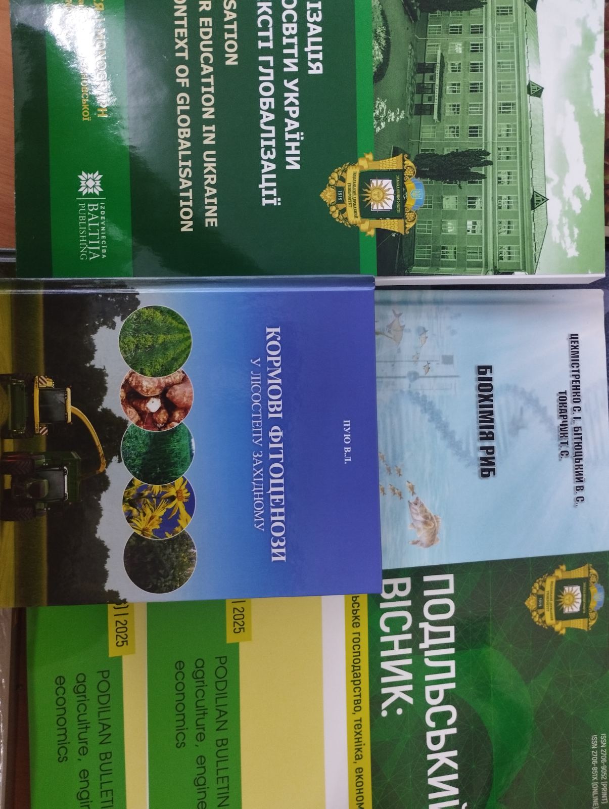 Особливо цінними для наукової бібліотеки є монографії і підручники. Науковій бібліотеці передано у фонд від професора кафедри землеробства, ґрунтознавства та захисту рослин Факультету агротехнологій і природокористування Василя ПУЮ 3 примірники авторського наукового доробка - монографії «КОРМОВІ ФІТОЦЕНОЗИ У ЛІСОСТЕПУ ЗАХІДНОМУ».