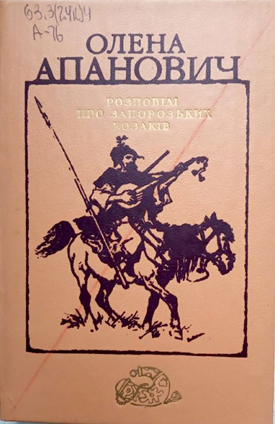 Апанович О. Розповіді про запорозьких козаків [Текст] / Олена Апанович. – Київ : Дніпро, 1991. – 335 с. В книзі зібрано надзвичайно цікаві, як правило, маловідомі матеріали з історії запорозького лицарства, висвітлено тривалий час замовчувані трагічні й героїчні сторінки козацької січової епопеї, сказано гірку правду про політику Російської імперії супроти українського народу та української державності. Друкуються також вибрані козацькі пісні та думи. |