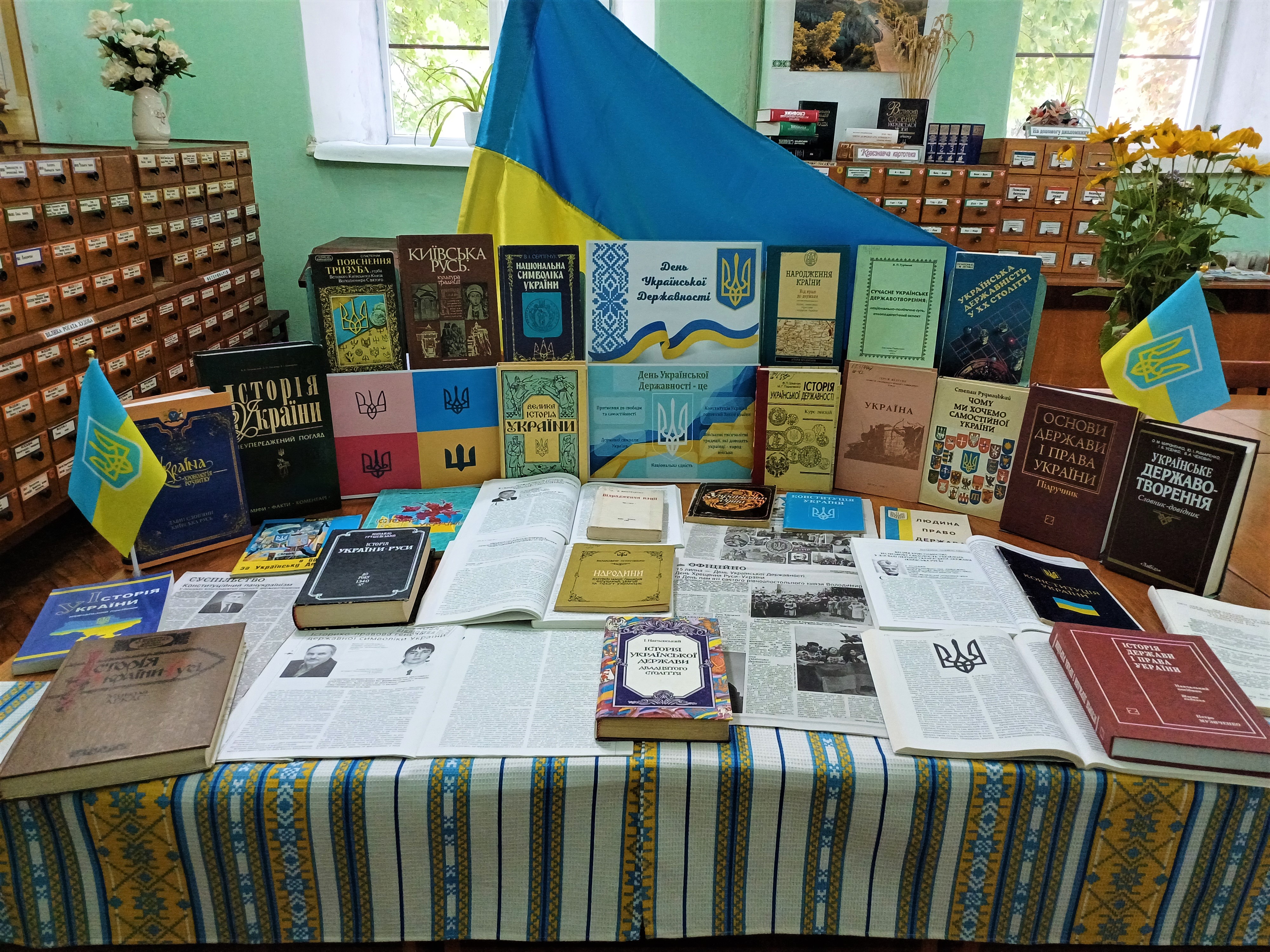 До Дня Української Державності у науковій бібліотеці експонується тематична книжкова виставка. На виставці представлені видання із фонду наукової бібліотеки, а саме наукова, історична, юридична література, а також публікації в періодичних та продовжуваних виданнях. Представлені матеріали відображають історію творення, становлення та розвиток української державності від княжої доби – Київської Русі до проголошення Незалежності України.
