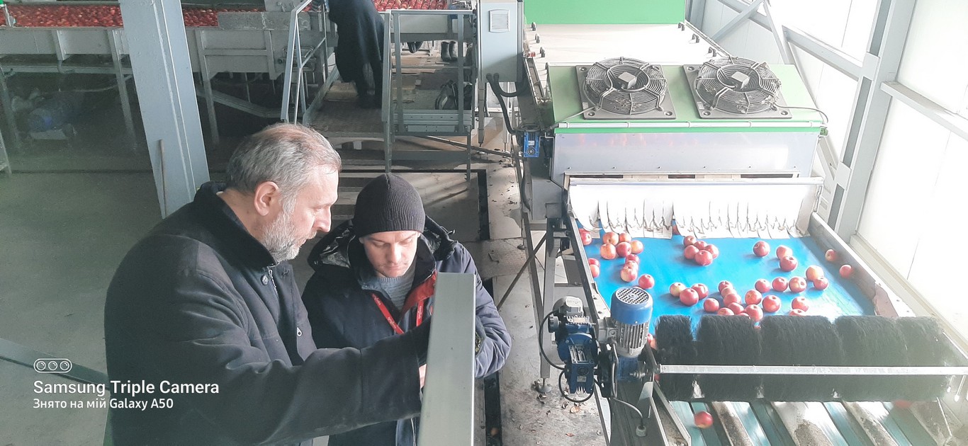 Останніми днями науково-педагогічні працівники факультету відвідали сортувально-зберігальний комплекс фруктів та елеватор зерна Групи компаній VITAGRO. Ознайомилися з автоматизованою лінією очистки, сортування та фасування плодів, зокрема яблук, де управління параметрами лінії здійснюється комп’ютерною системою та робототехнікою. Особливу зацікавленність викликав пристрій для сортування та калібрування яблук по стиглості, розміру та вазі. Процес зберігання фруктів в холодильних установках грунтується на підтримці оптимальної температури, тиску та вологості. Дані установки обаднані системою контролю кисню та вуглекислого газу в камерах зберігання, що значно продовжує термін зберігання продукції.