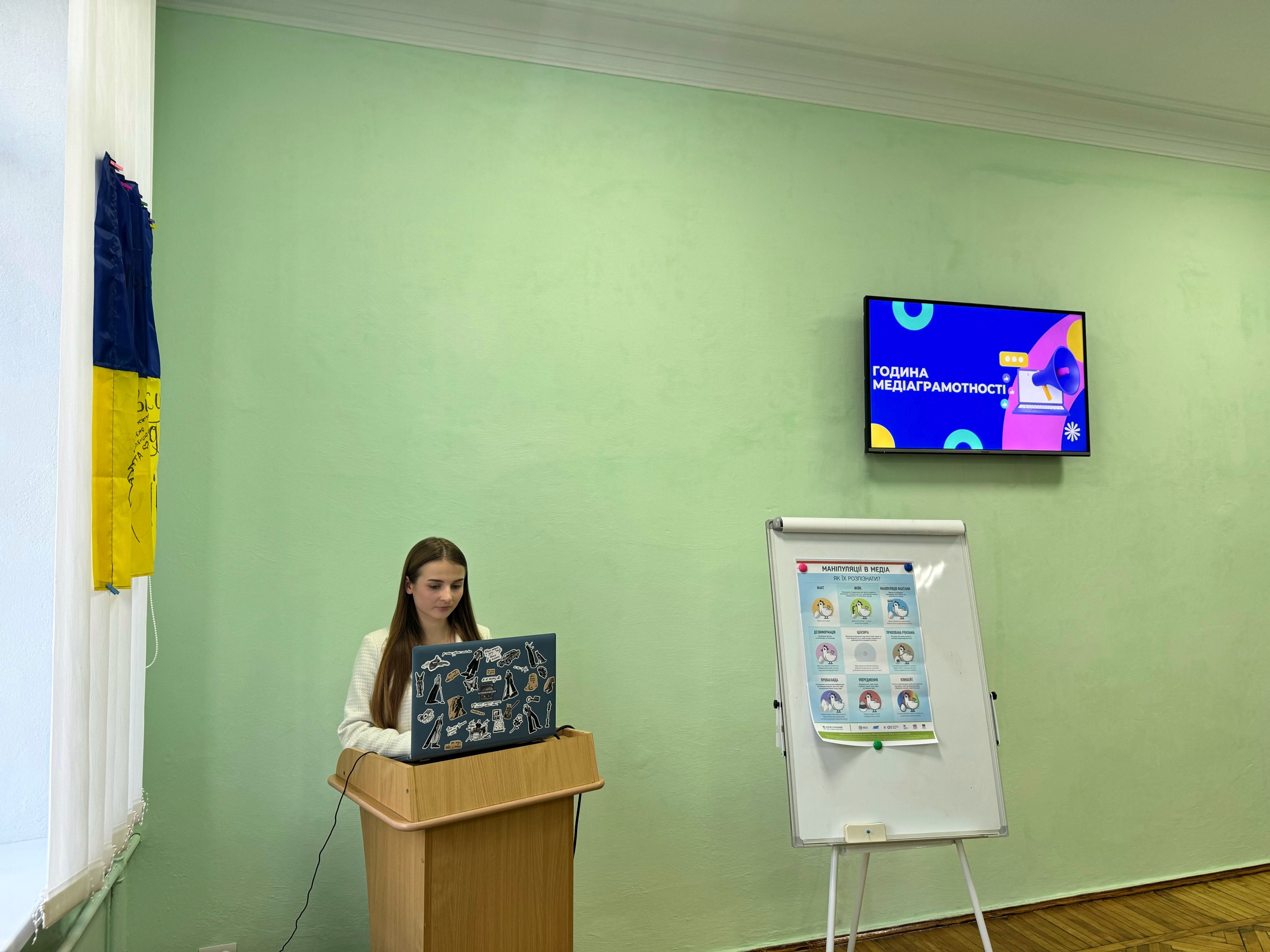 10 квітня 2025 року асистент кафедри української мови Ульяна Чайковська провела зі здобувачами вищої освіти виховний захід «Година медіаграмотності».