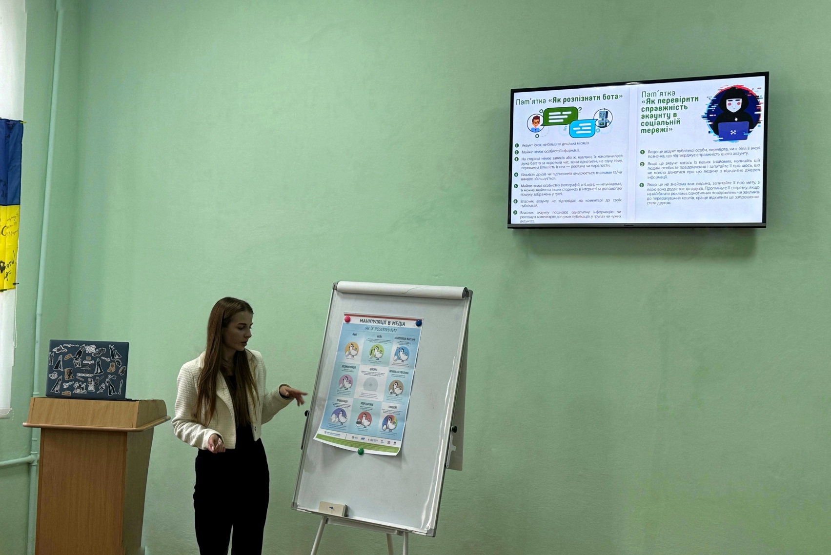 Під час заходу було розглянуто різні види інформаційних маніпуляцій, спільно обговорювали, чому пропаганда є небезпечною, вчилися розпізнавати її прояви у щоденних новинах. Особливу увагу приділили питанню, як не піддаватися впливу фейкових новин, формувати власну думку й перевіряти джерела інформації.