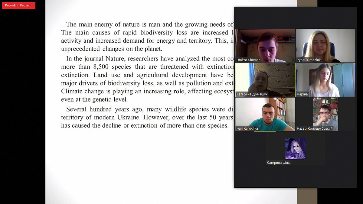 Так, підсумкові заняття з дисципліни «Англійська мова» були проведені завідувачем кафедри іноземних мов ПДАТУ Іриною Гуменюк на перших курсах спеціальностей 210 «Агрономія», 204 «Технологія виробництва і переробки продукції тваринництва» 208 «Агроінженерія» та 211 «Ветеринарна медицина» у режимі онлайн конференцій у застосунку Zoom.