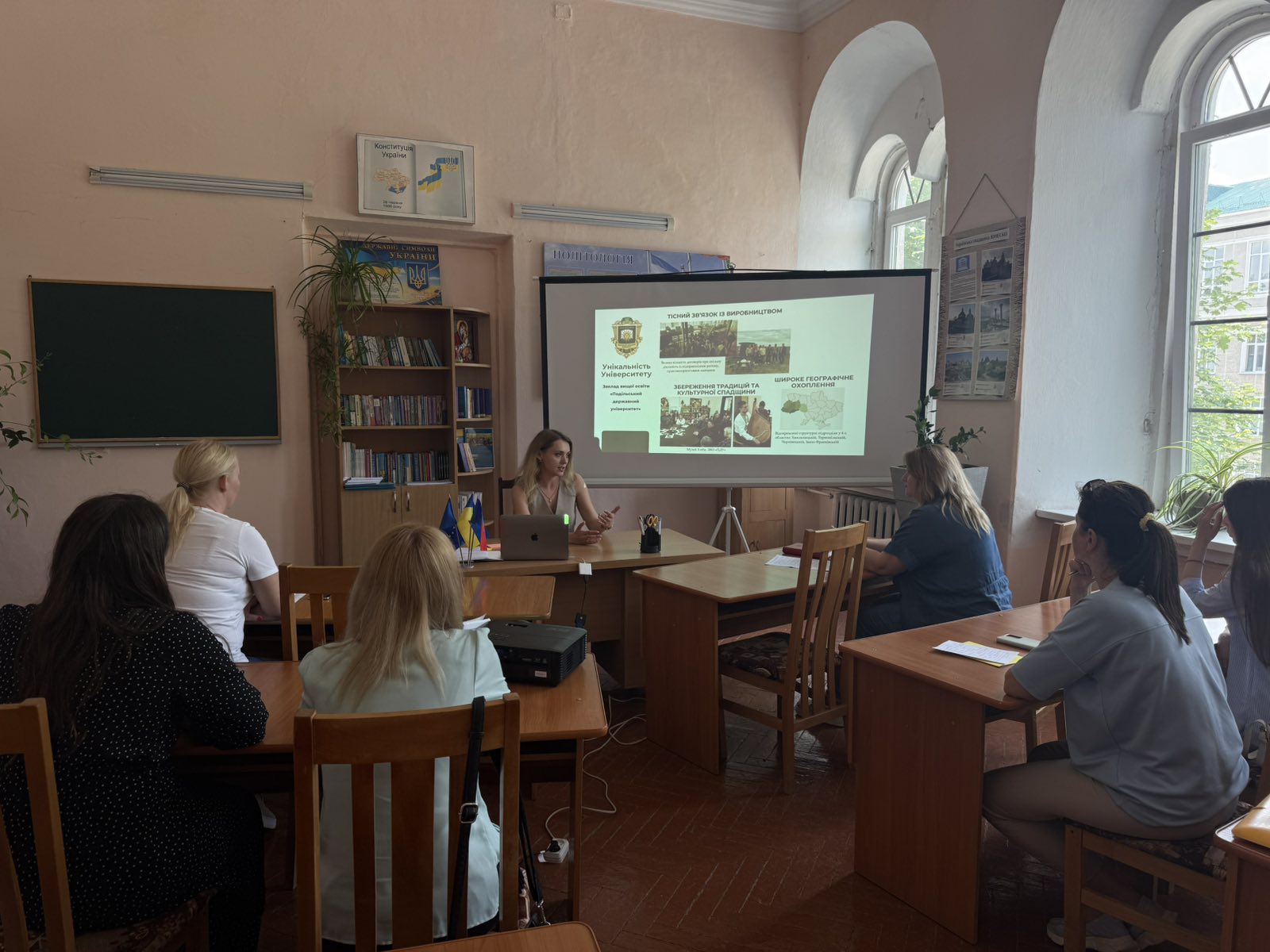 Засідання розпочалось із презентації в.о.директора ННІЗДО Вікторією РАРИЦЬКОЮ майбутньої стратегії розвитку ЗВО «ПДУ», напрацьованої командою університету в рамках другого модулю Програми професійного розвитку академічних менеджерів. Під час зустрічі було обговорено основні етапи побудови стратегії університету, сучасні виклики та перспективи інтернаціоналізації, окреслено пріоритетні кроки щодо розвитку академічної мобільності, зміцнення партнерських зв’язків із закордонними ЗВО, розширення участі в міжнародних проєктах, а також підвищення рівня міжкультурної компетентності здобувачів вищої освіти та викладачів.