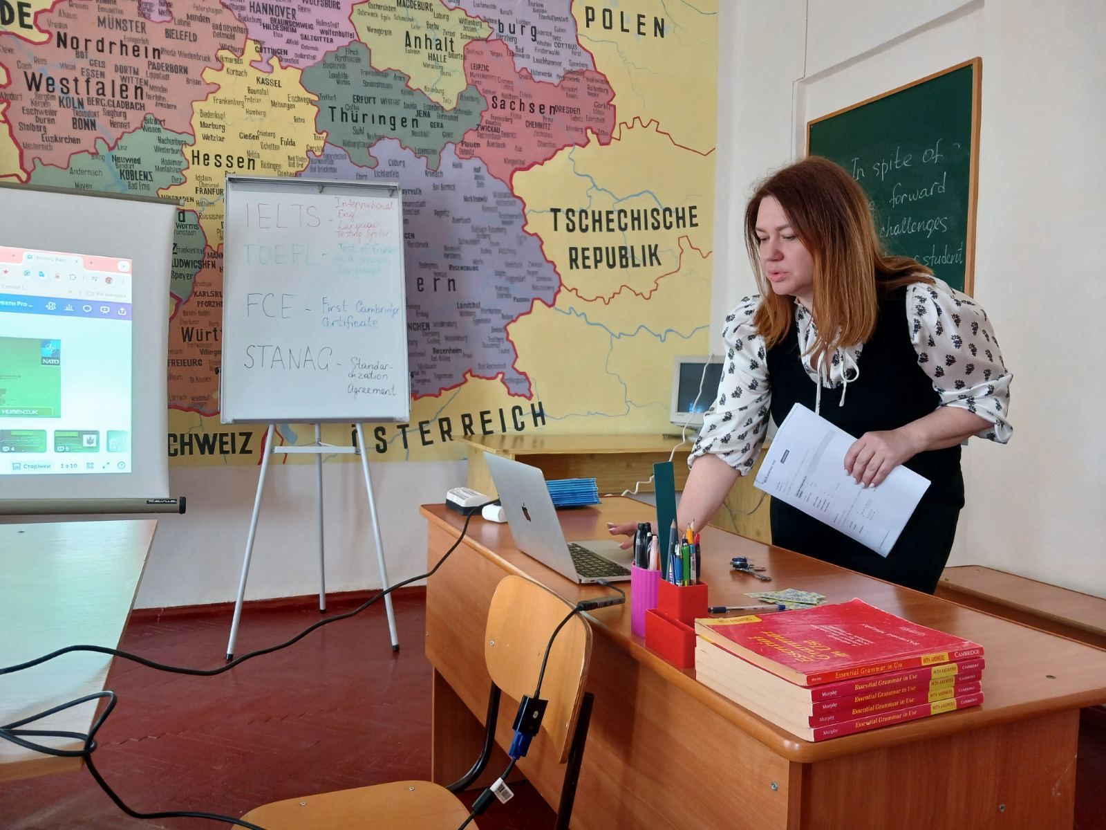 29 квітня на кафедрі іноземних мов було проведено навчально-методичний семінар для викладачів кафедри на тему: «Підготовка до міжнародних іспитів» (IELTS, TOEFL, FCE, STANAG). Ініціатором та модератором заходу виступила доцент кафедри іноземних мов Ірина Гуменюк.
