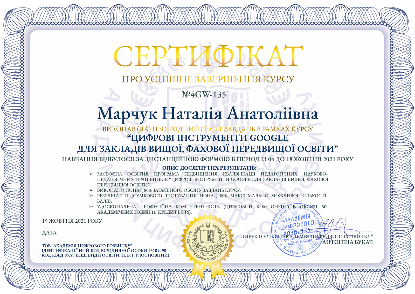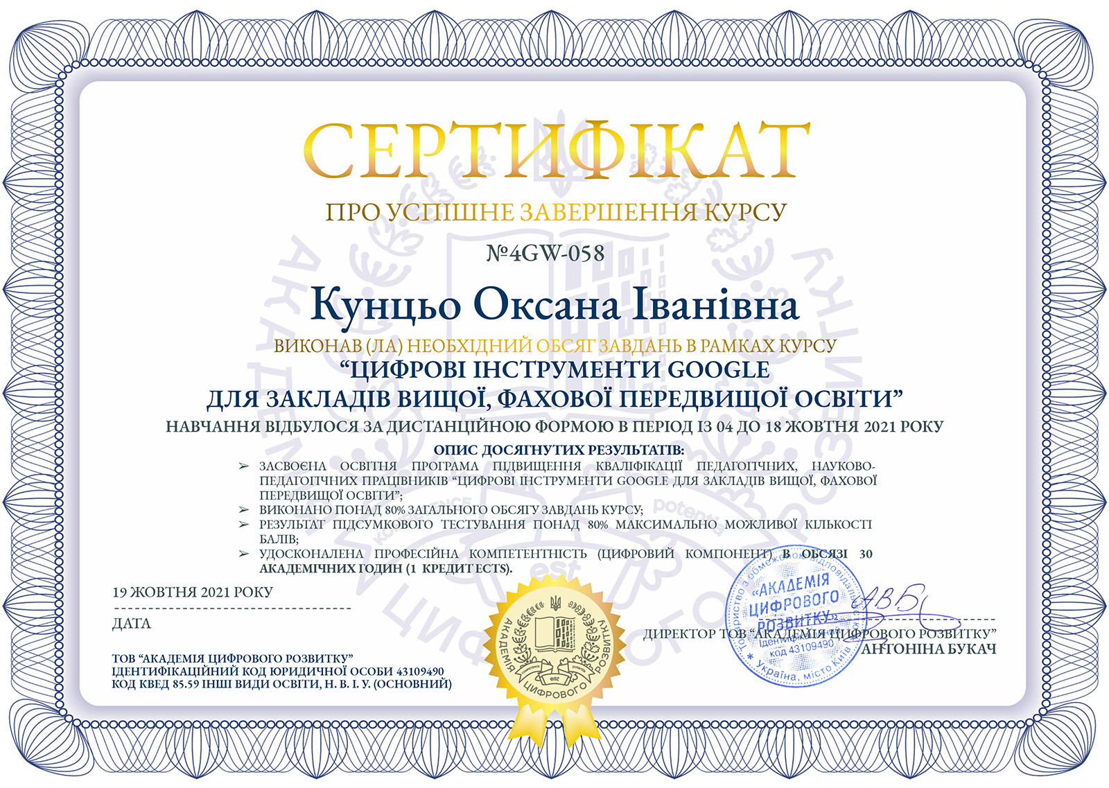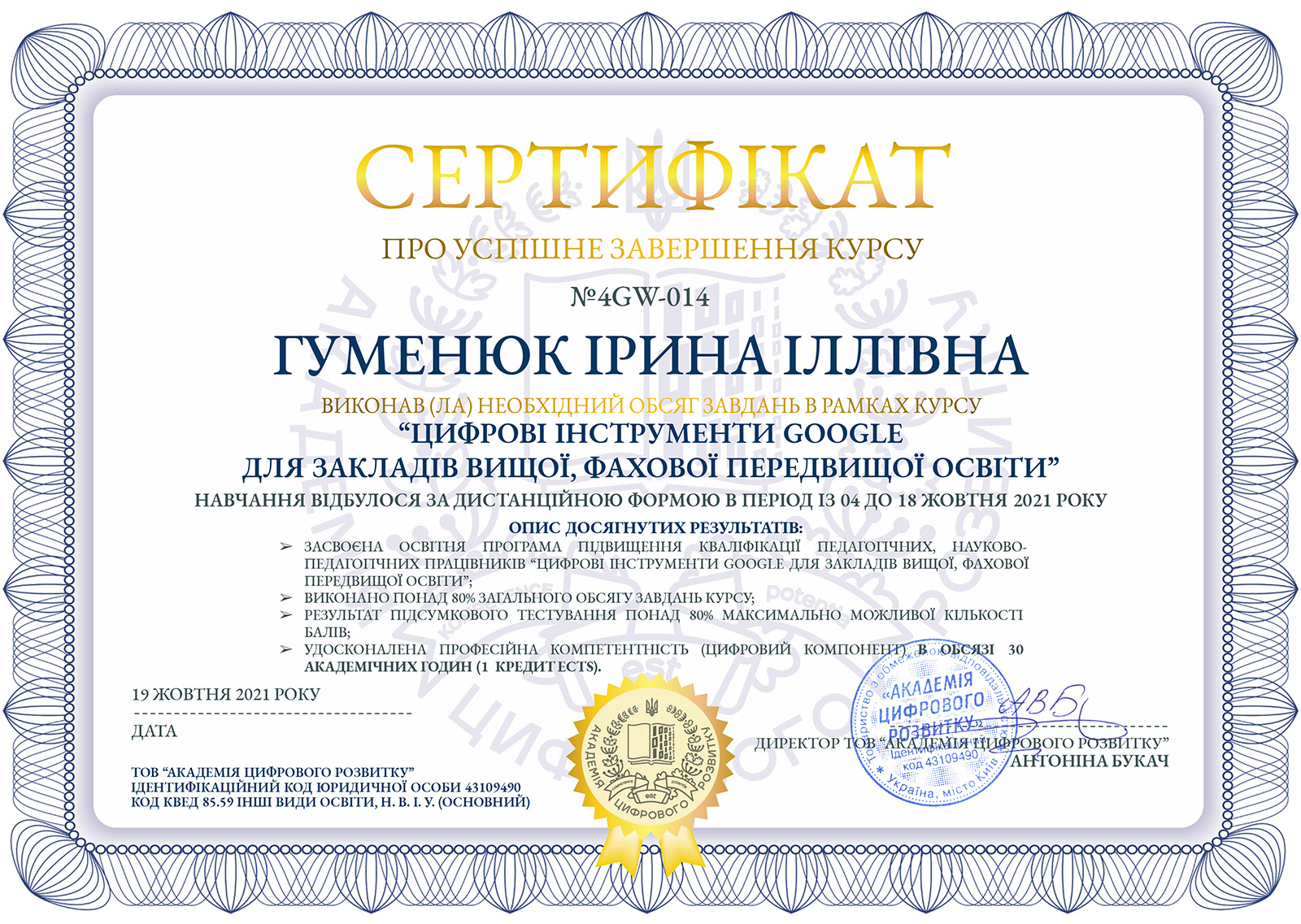 Завершився навчальний курс виконанням підсумкового тесту, а для тих учасників, хто опанував не менше 80% матеріалу – видачею відповідних сертифікатів.