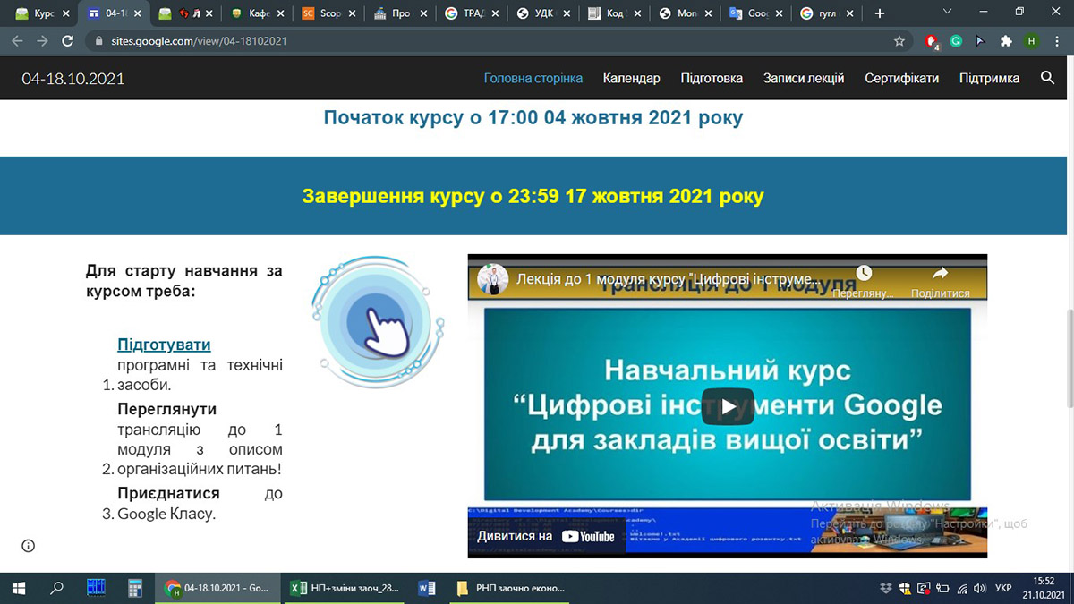 Учасники онлайн-курсу мали змогу фахово зростати, вправлятися методиками дистанційного навчання, розширити можливості використання цифрових інструментів для підвищення ефективності освітнього процесу. Робота у віртуальному середовищі Google Класів, лекційні відео, консультації від тренерів, супровід, постійний зворотний зв'язок – все це дозволило опанувати 5 навчальних модулів у короткий термін. Впевнено можна сказати, що кожен учасник знайшов для себе щось нове навіть у відомих додатках, з якими працювали. А це : Google Клас, Google Meet, Google Календар, Google Keep, Google Документи, Форми, Презентації та Таблиці, Google Jamboard, Google Сайти і багато інших ресурсів. Цікаві можливості та застосування не лише традиційних ресурсів, а й таких, як Google Тренди, Google Академія, Google Групи, Google Сповіщення, Доповнення до об'єктів Google Диску та можливості Google Workspace. Особлива увага зверталася на навчальні можливості Google, саме тому невід'ємними складовими онлайн-курсу стали знайомство із Google Центр безпеки, способи створення та підтримки персонального інформаційного середовища викладача, створення захищених відеозустрічей та ресурсів для захисту освітнього процесу в цілому.