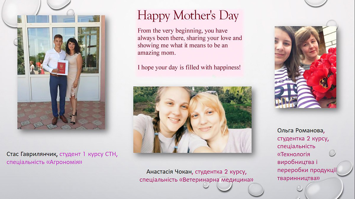 За сприяння викладачів кафедри іноземних мов студенти Подільського державного аграрно-технічного університету в період дистанційного навчання вшанували найдорожчих для них людей - мам, декламуючи англійську поезію та поділившись фото із сімейного архіву.