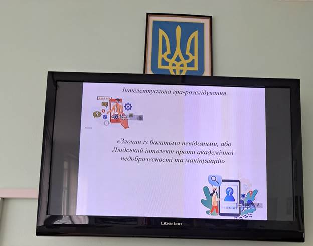 22 квітня 2025 року асистент кафедри української мови Назаренко І.О. провела інтелектуальну гру-розслідування «Злочин із багатьма невідомими, або Людський інтелект проти академічної недоброчесності». Її учасниками стали студенти факультету ветеринарної медицини і технологій у тваринництві та інституту бізнесу і фінансів. Мета заходу – виховувати у здобувачів освіти повагу до принципів академічної доброчесності в умовах сучасних викликів.
