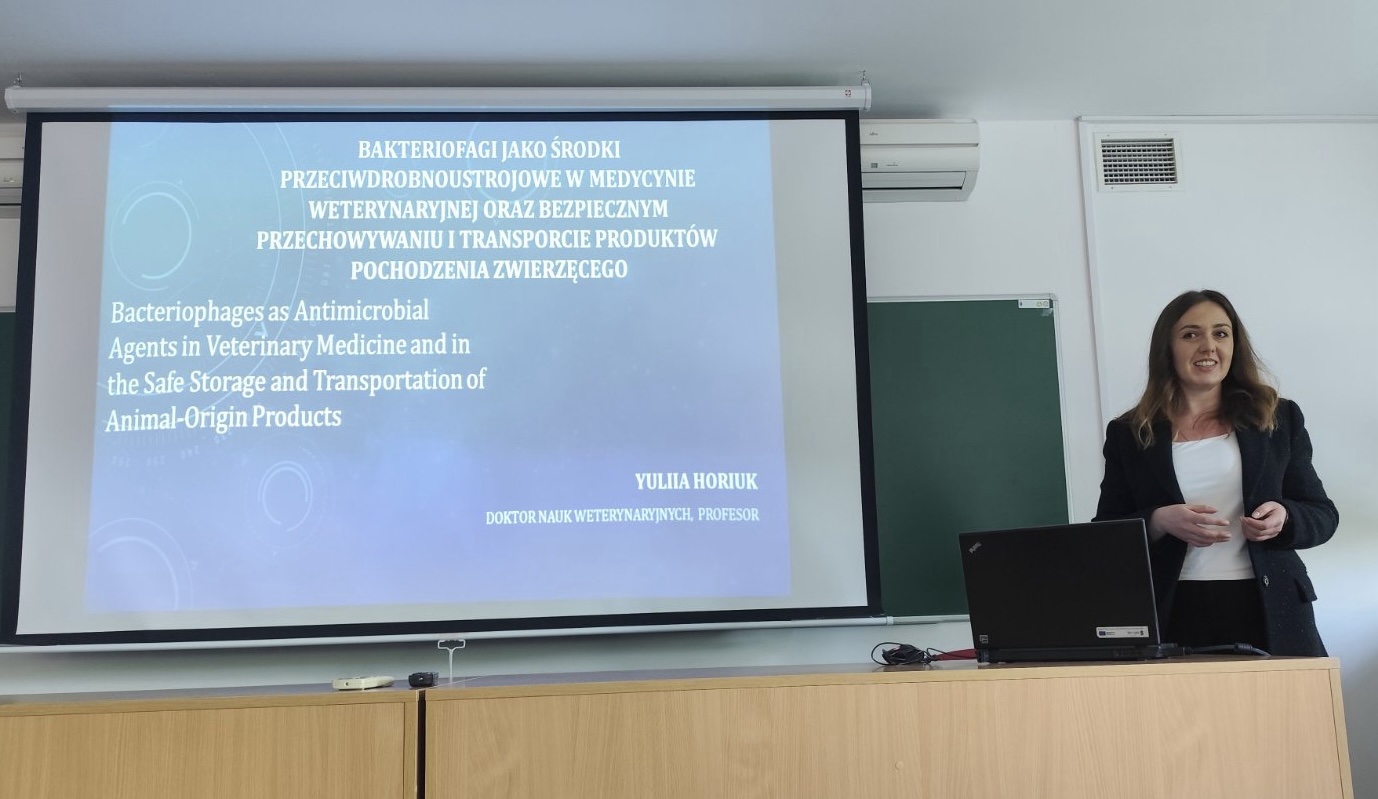Від української сторони з доповіддю виступила доктор ветеринарних наук, доцент Юлія Горюк. Тема її виступу «Бактеріофаги як антимікробні засоби у ветеринарній медицині та безпечному зберіганні й транспортуванні продукції тваринного походження», викликала жвавий інтерес серед польських колег. Доповідь отримала позитивні відгуки за високу наукову новизну та практичну значущість, особливо в контексті зростаючої стійкості патогенних мікроорганізмів до антибіотиків. Юлія Горюк акцентувала увагу на перспективності фаготерапії як ефективної альтернативи традиційним протимікробним засобам у ветеринарії та харчовій галузі.