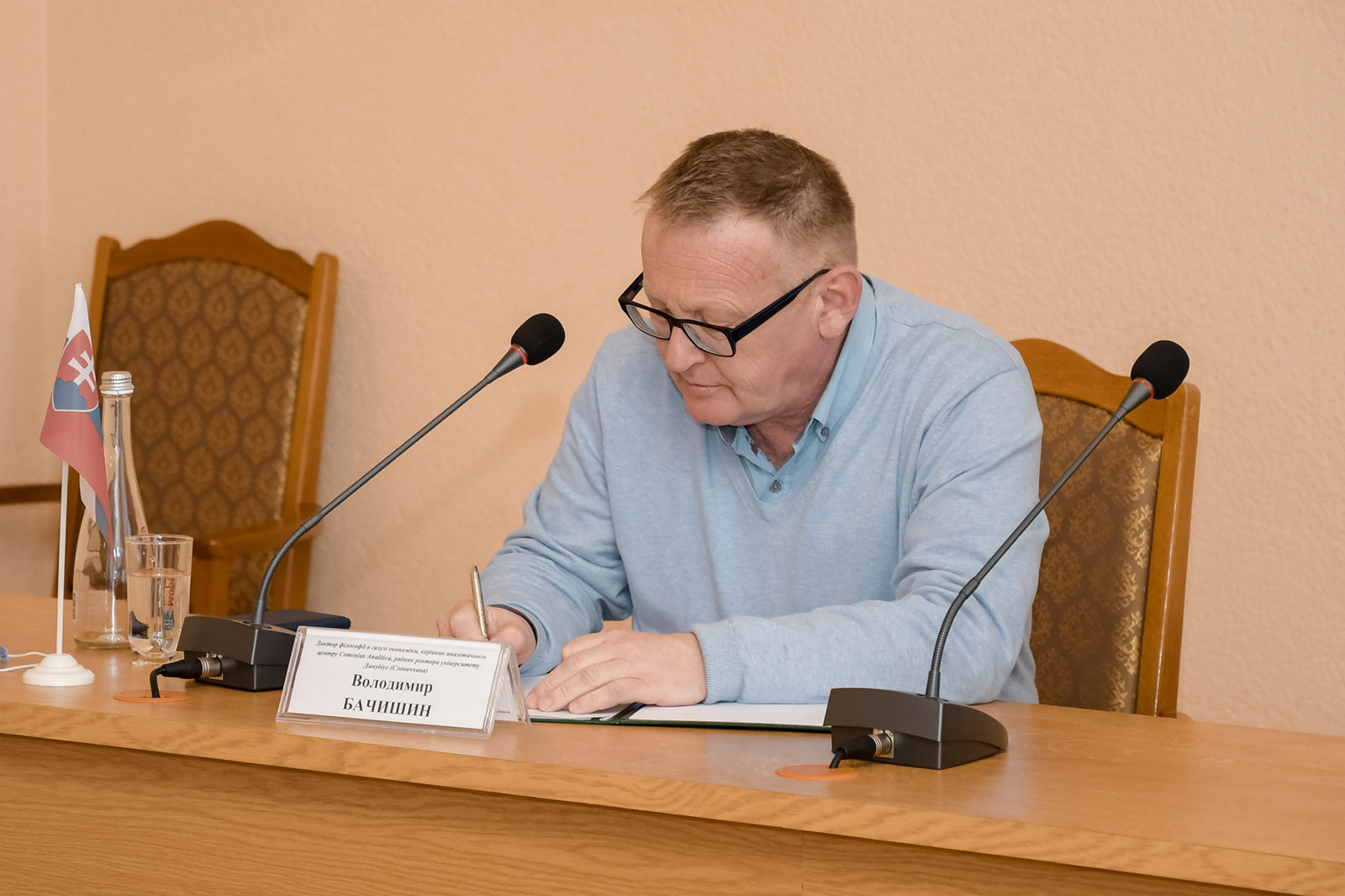 Перед початком заходу колегу зі Словаччини представив ректор Подільського державного аграрно-технічного університету, професор, доктор економічних наук, член-кореспондент НААН України Володимир ІВАНИШИН. Подякувавши, Володимир БАЧИШИН передав вітання від ректора Університету Данубіус професора Петера ПЛАВЧИНА і висловив сподівання щодо зміцнення співробітництва між словацьким й українським університетом.