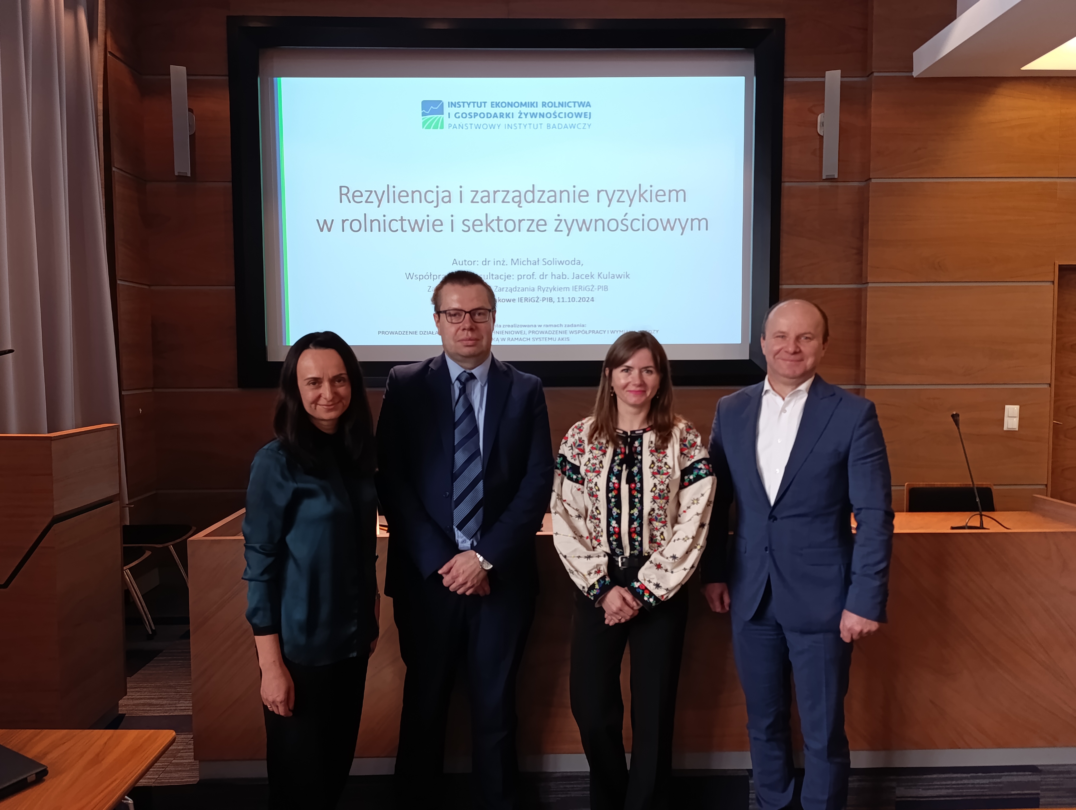 11 жовтня взяли участь у семінарі «Стійкість та управління ризиками в сільському господарстві та харчовому секторі», який проводився у Інституті економіки сільського господарства та продовольства. Лекцію прочитав доктор Міхал Солівода. (Посилання на захід https://ierigz.waw.pl/aktualnosci/seminaria-i-konferencje/25668,56,3,0,seminarium-pt-"rezyliencja-i-zarzadzanie-ryzykiem-w-rolnictwie-i-sektorze-zywnosciowym".html)