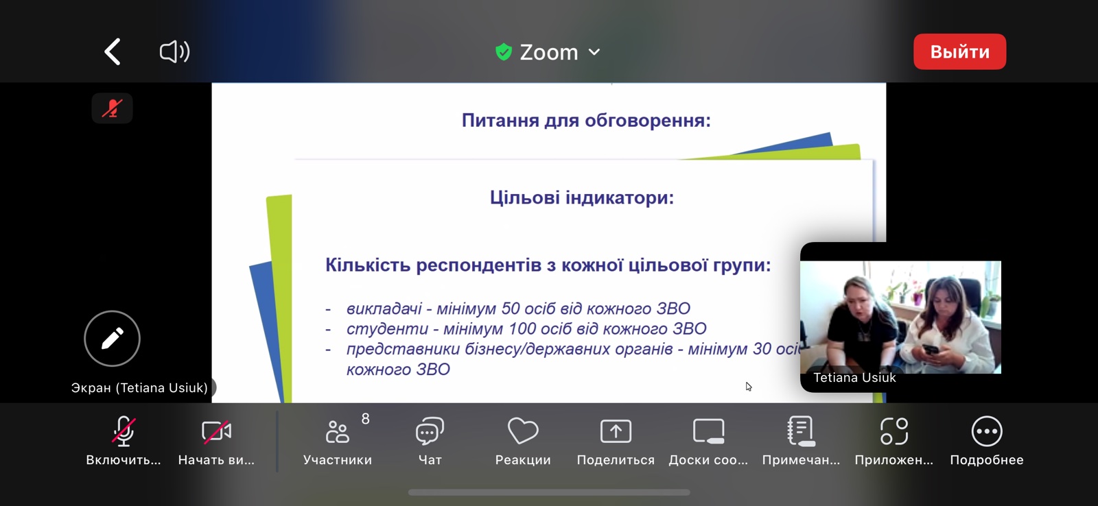 Основна увага під час зустрічі була зосереджена на обговоренні процесу підготовки звіту за результатами соціологічного опитування, яке проводилося з метою вивчення освітніх потреб і викликів, пов’язаних із забезпеченням сталого розвитку. Учасники зустрічі обговорили методологічні аспекти обробки даних, узгодили підходи до структури звіту та визначили спільні етапи подальшої роботи над документом.
