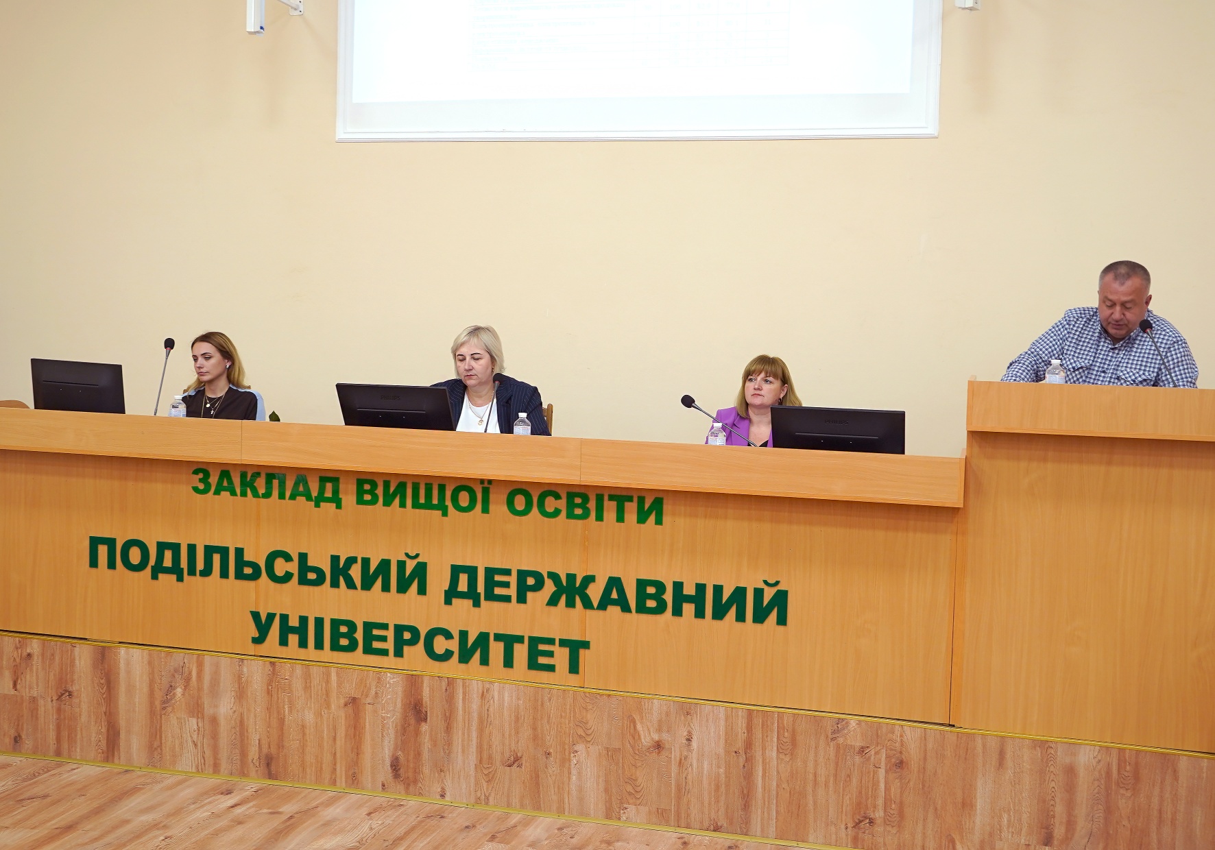 Про звіти за підсумками діяльності факультетів та навчально-наукових інститутів, а також перспективи їх розвитку доповіли: декан факультету агротехнологій і природокористування Віталій ЛАПЧИНСЬКИЙ, декан факультету ветеринарної медицини і технологій у тваринництві Віктор ГОРЮК, в.о. декана інженерно-технічного факультету Юрій ПАНЦИР, в.о. декана факультету енергетики та інформаційних технологій Людмила МИХАЙЛОВА, в.о. декана факультету навчально-наукового інституту бізнесу і фінансів Наталія КОРЖЕНІВСЬКА, директор навчально-наукового інституту харчових технологій Анатолій ДИМЧУК, в.о. директора навчально-наукового інституту заочної і дистанційної освіти Олександр СЕМЕНОВ.