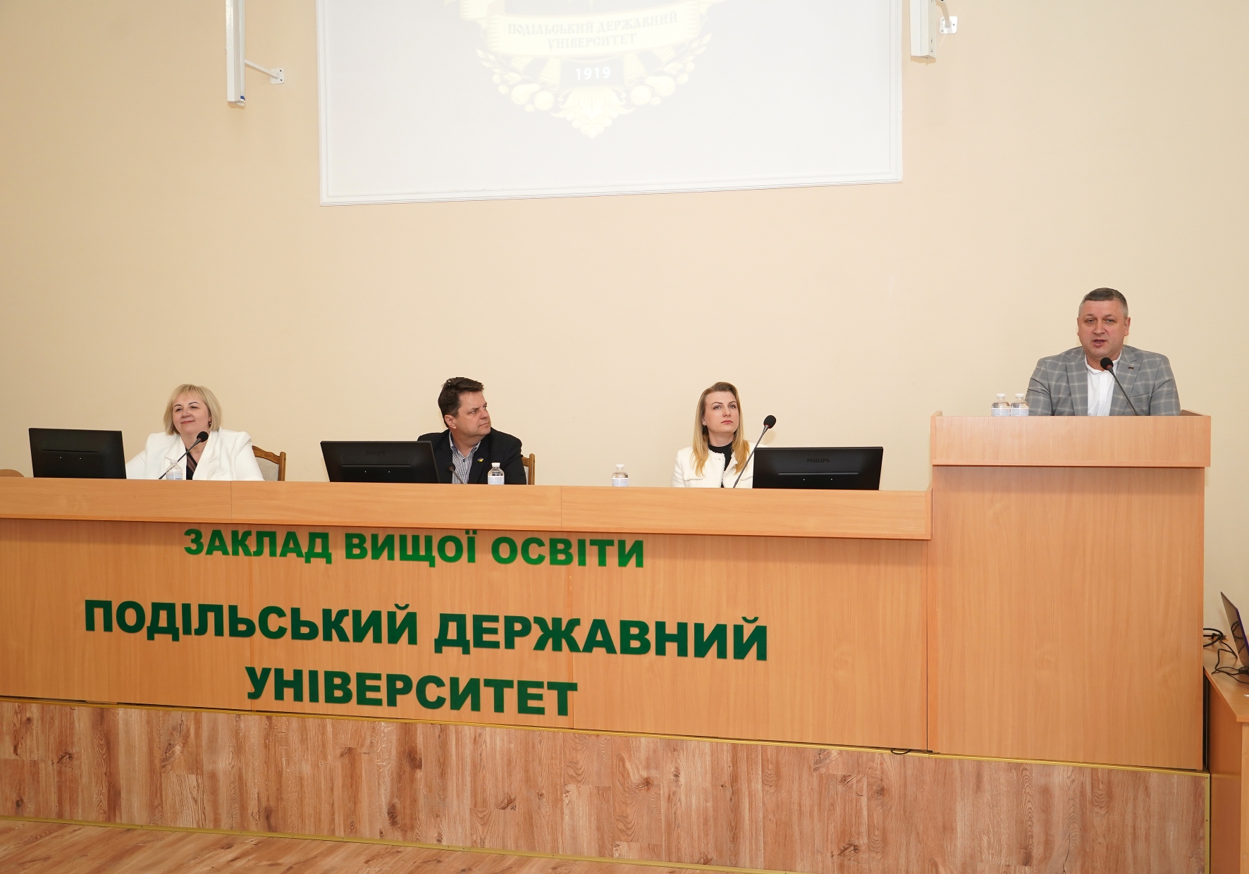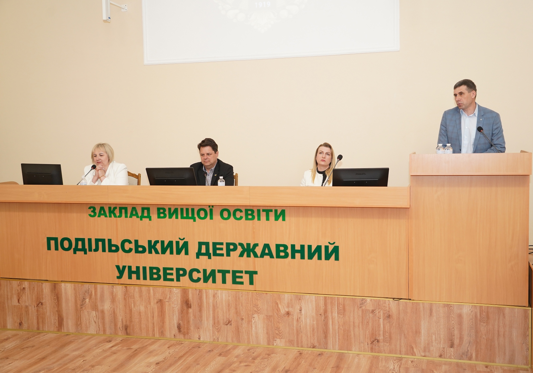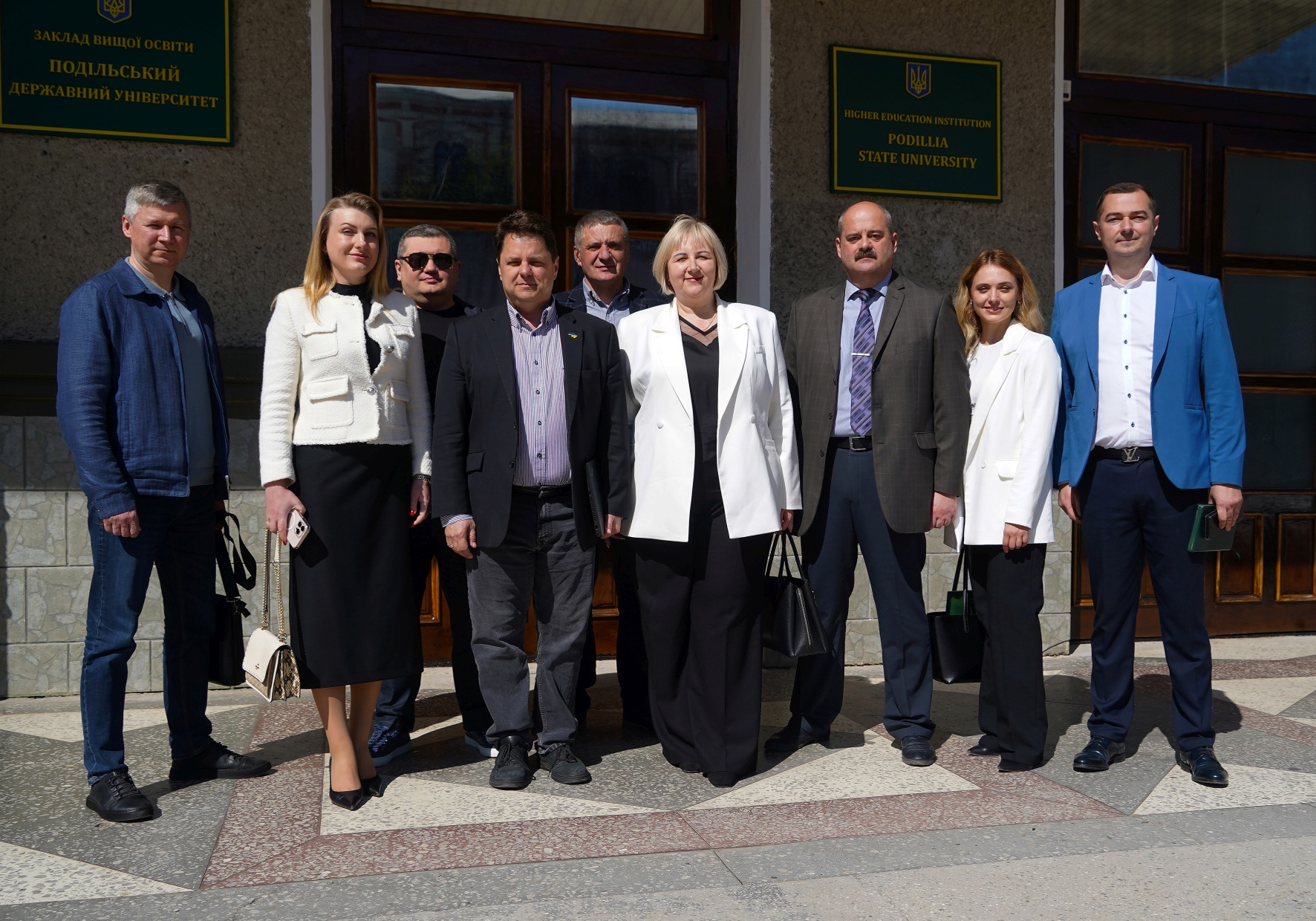 29 квітня 2025 року Заклад вищої освіти «Подільський державний університет» мав за честь приймати з робочим візитом поважну делегацію: заступника Міністра освіти і науки України Михайла ВИННИЦЬКОГО, першого заступника голови Хмельницької ОВА Оксану ВЖЕШНЕВСЬКУ, директора департаменту освіти та науки Хмельницької ОВА Олександра ПУНДУ, радника голови Хмельницької ОВА Андрія ГАМАЛІЯ. Мета візиту — ознайомлення з діяльністю університету, його колективом та матеріально-технічною базою.